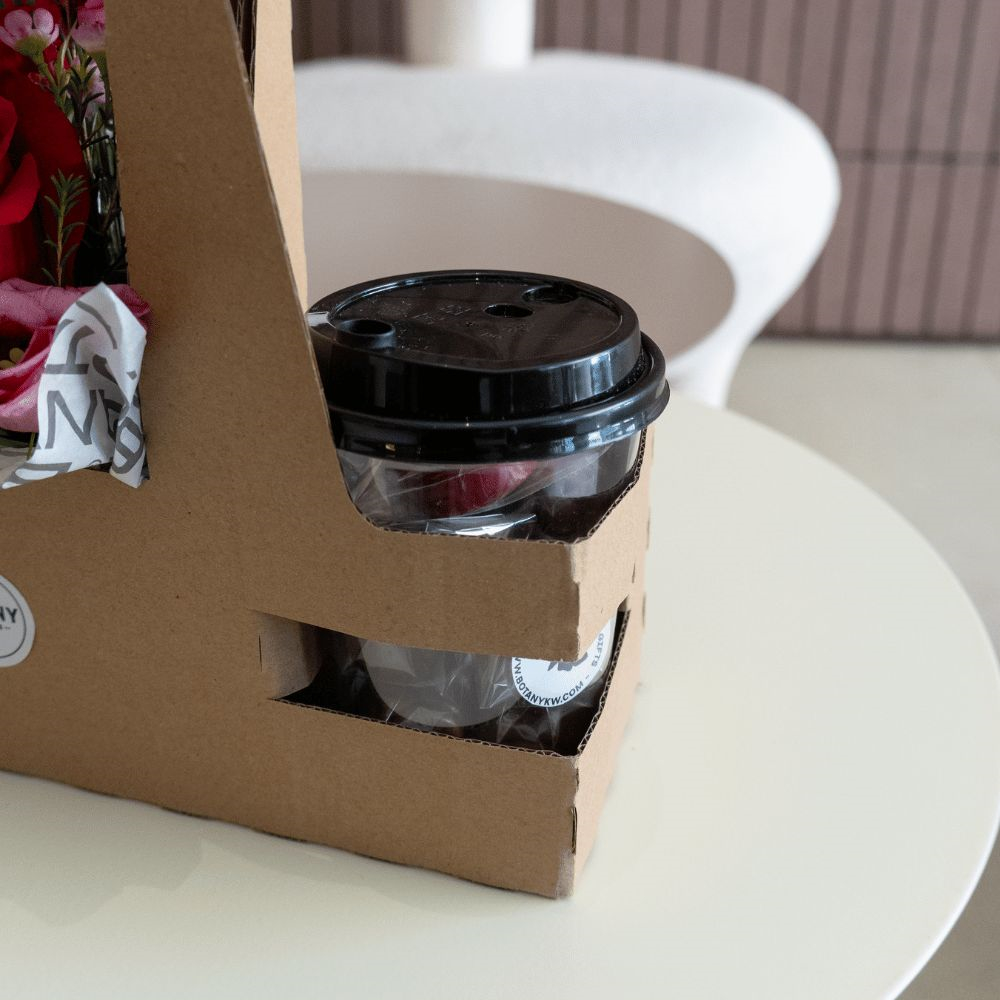 This bouquet contains roses with 9pcs of chocolates in a coffee box.