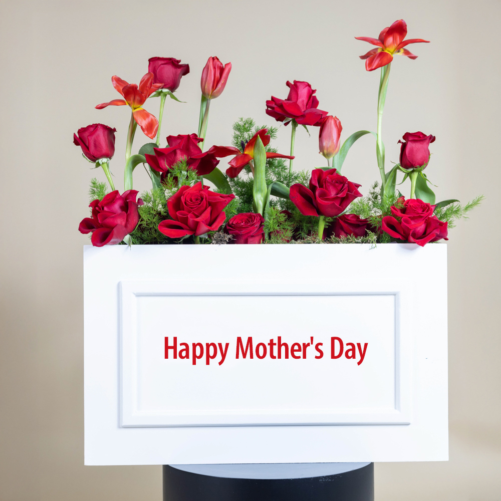 An elegant box featuring artificial flowers.