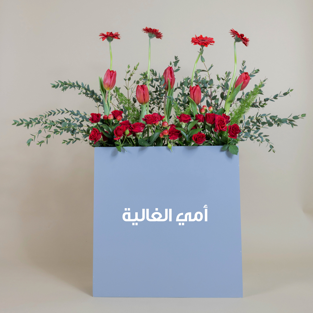 A beautiful bouquet containing roses, baby roses, tulips, and gerberas.