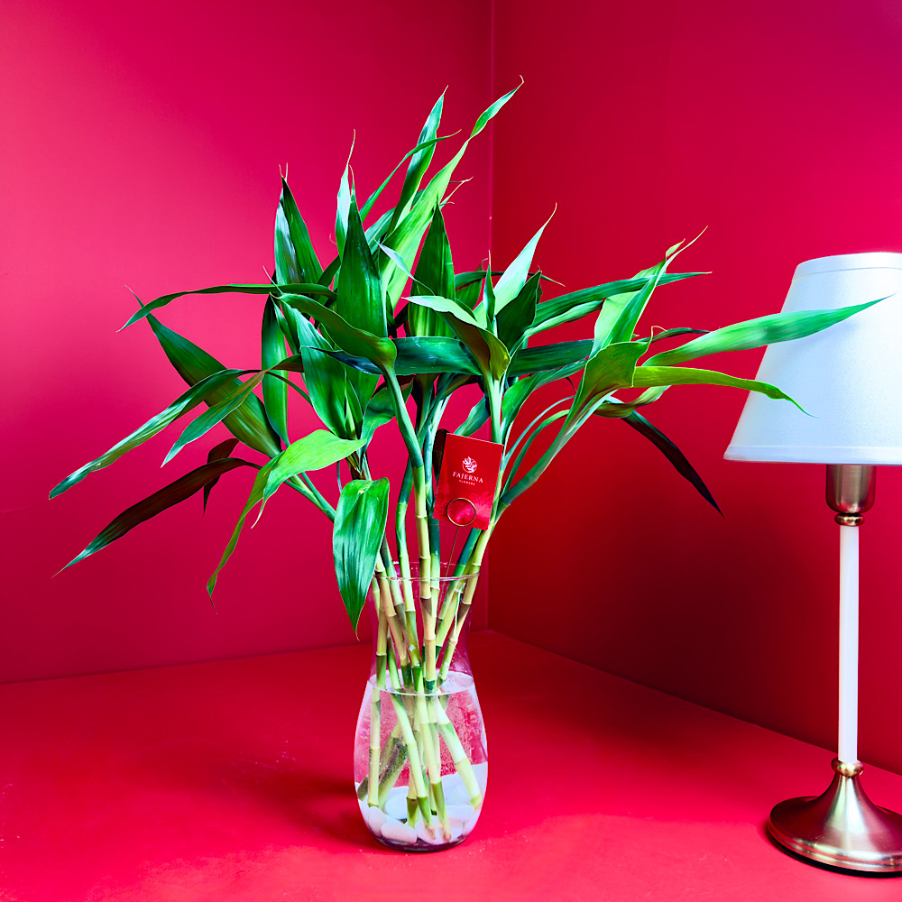 Bouquet that contains mix pink and red flowers arranged in glass ball vase.