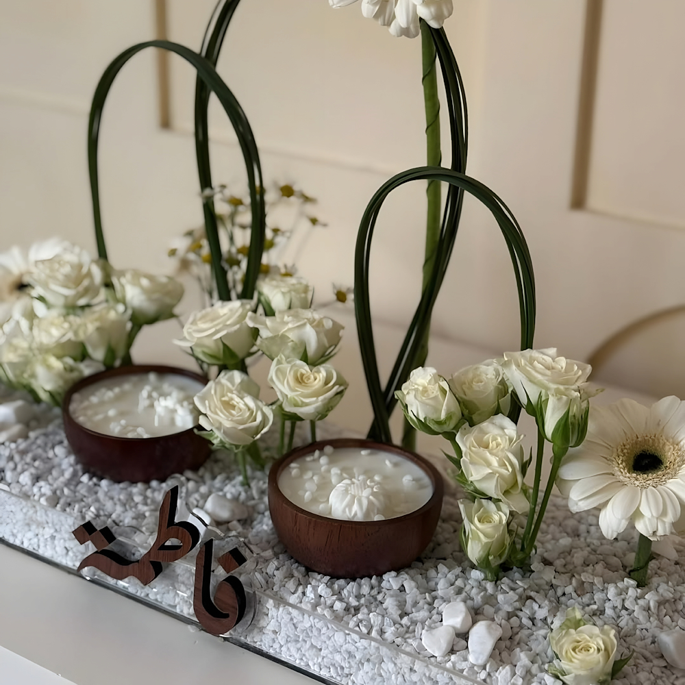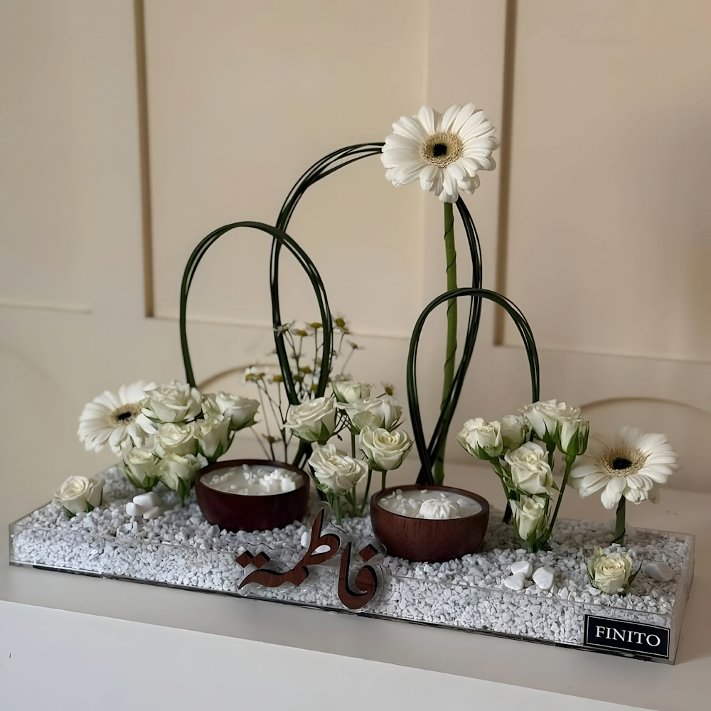 A bouquet containing baby roses and gerberas, arranged beautifully in a tray. Comes with a candle.
