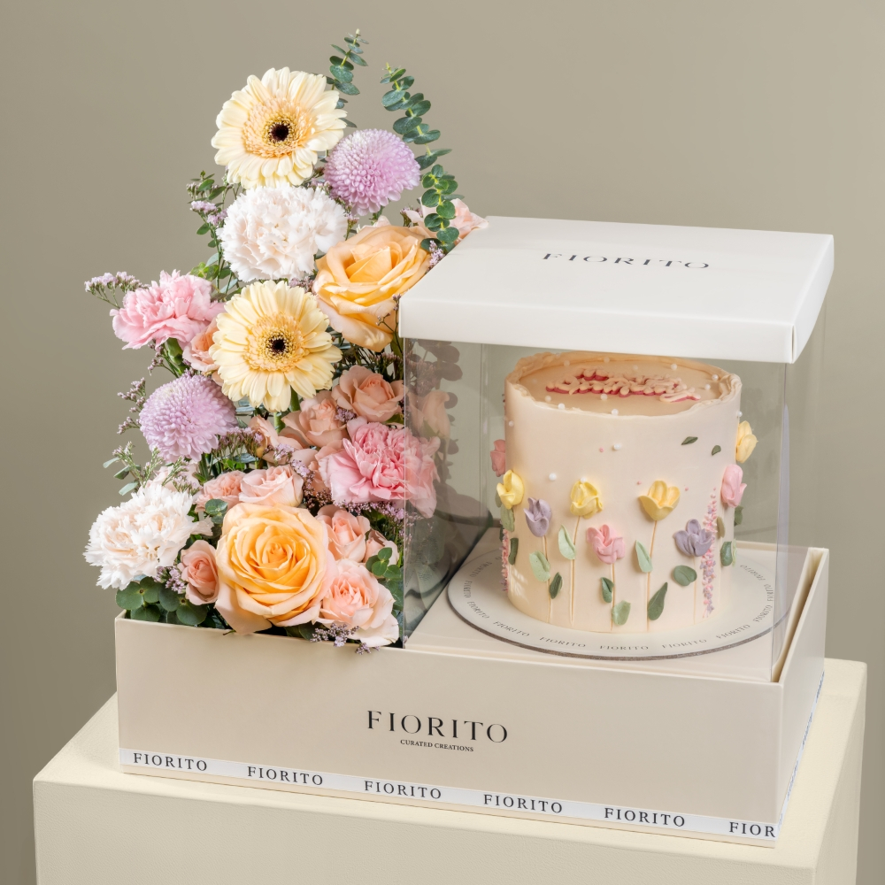 A refined marble tray featuring tulips and hydrangea, paired with prayer beads, a censer, and premium oud wood, all elegantly presented under an acrylic cover. A dignified gift designed to evoke a sense of spiritual serenity and fragrance during the holy month.