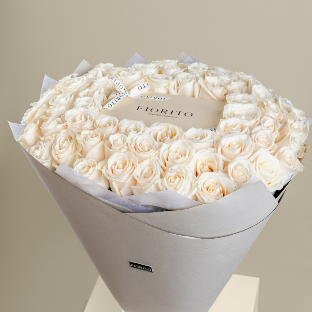 A stunning bouquet featuring 80 exquisite roses arranged with elegance and a box of premium French chocolates, a luxurious gift ideal for grand celebrations, romantic moments, and unforgettable occasions.