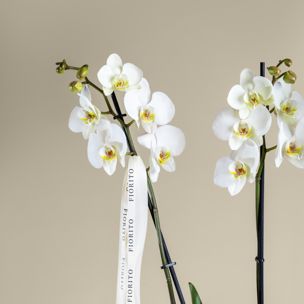 A fiorito signature pot featuring premium orchid plants arranged with refined elegance, a luxurious gift that adds a touch of sophistication to every meaningful moment.