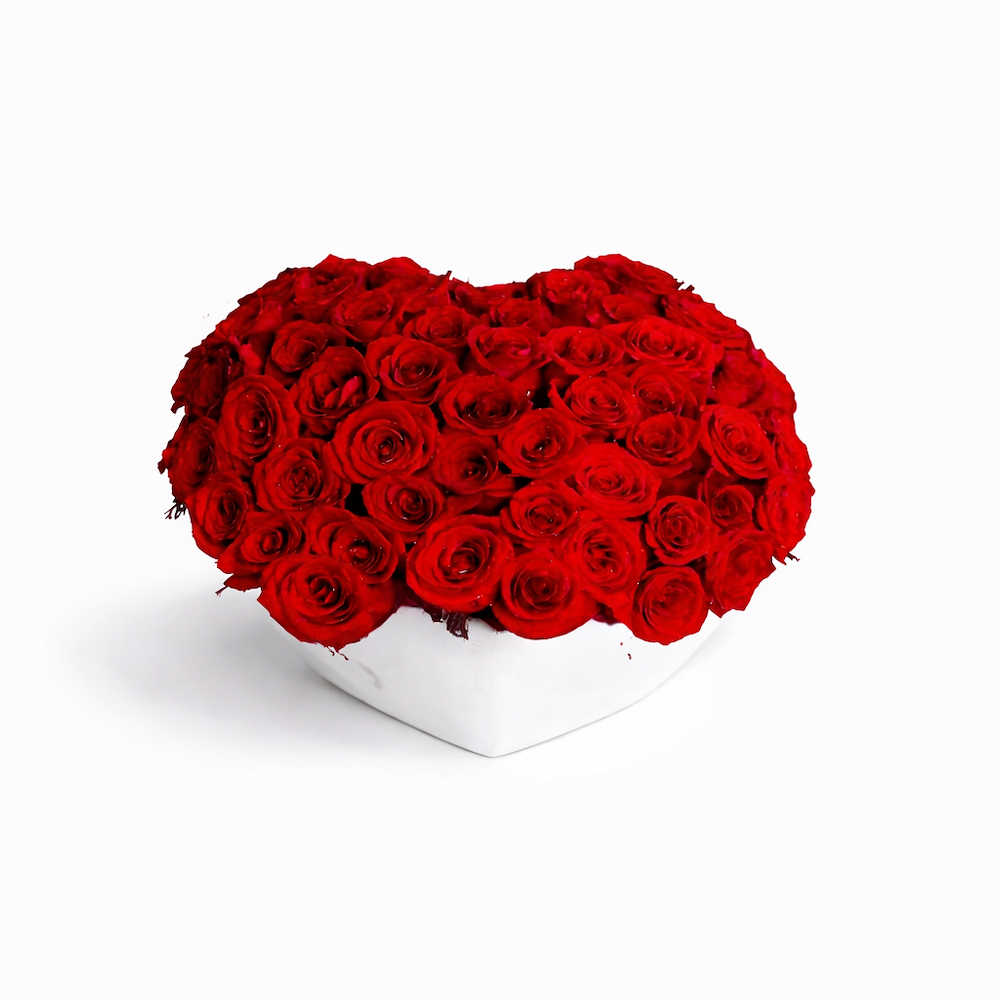 A luxurious heart-shaped arrangement of red roses that expresses deep passion and sincere emotions. Every rose tells a love story, making it the perfect gift for Love Day and unforgettable romantic moments.