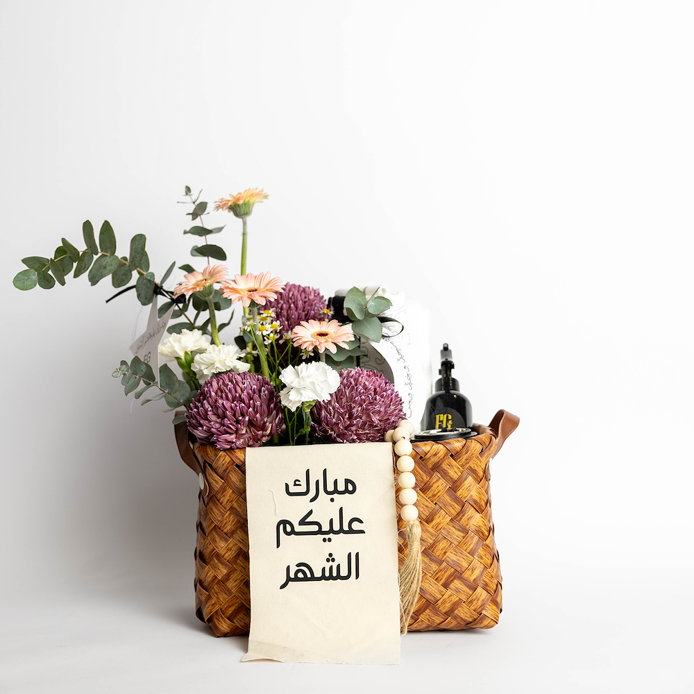 An orchid arrangement with pussy willow branches and white hydrangeas in a decorative vase.
