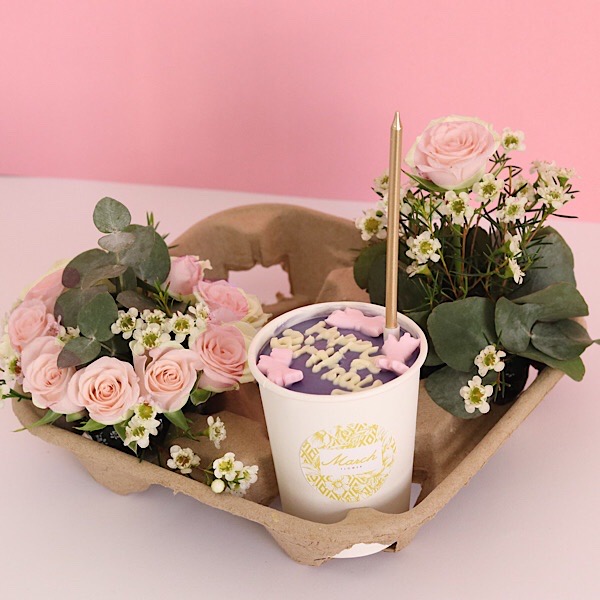 A bouquet contains mix baby roses, vanilla cake and home fragrance spray.