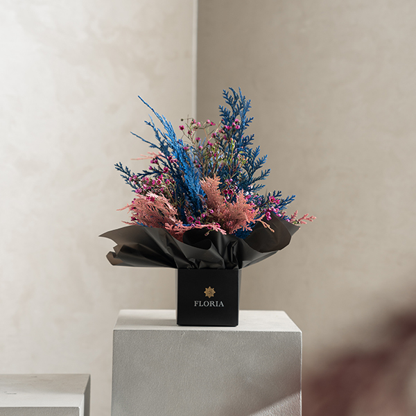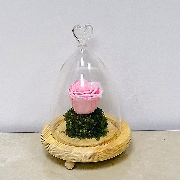 A hand bouquet filled with 10 yellow baby rose flowers.