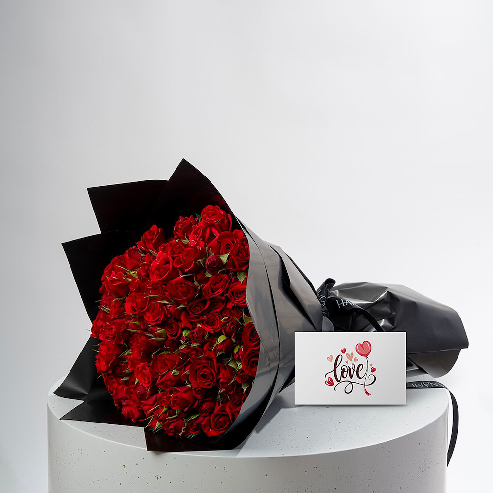 A hand bouquet that contains red baby roses, beautifully arranged to create a charming and romantic floral display. Perfect for expressing love and appreciation.