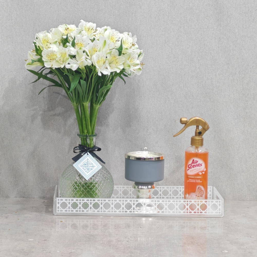This bouquet contains orchids and baby roses.