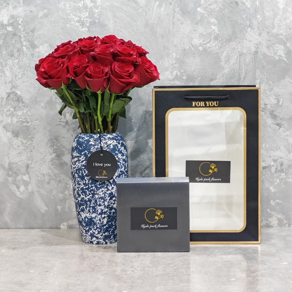 This bouquet contains lilies with chocolates.