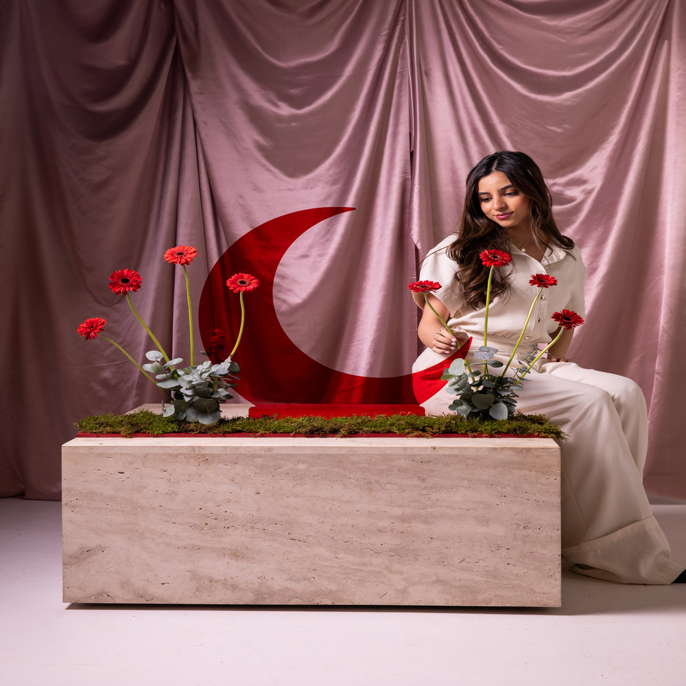 A tray featuring gerbera flowers with Ramadan crescent.