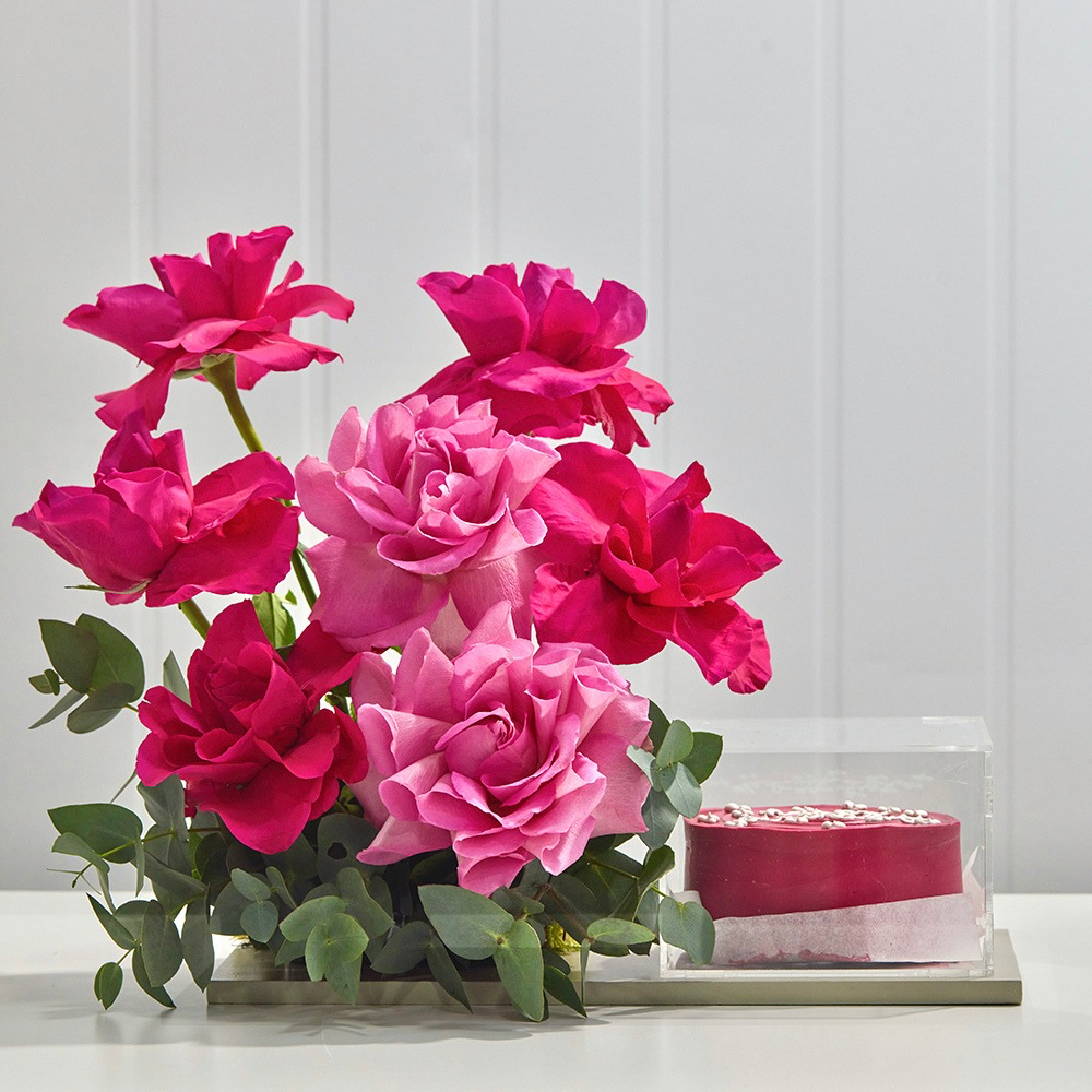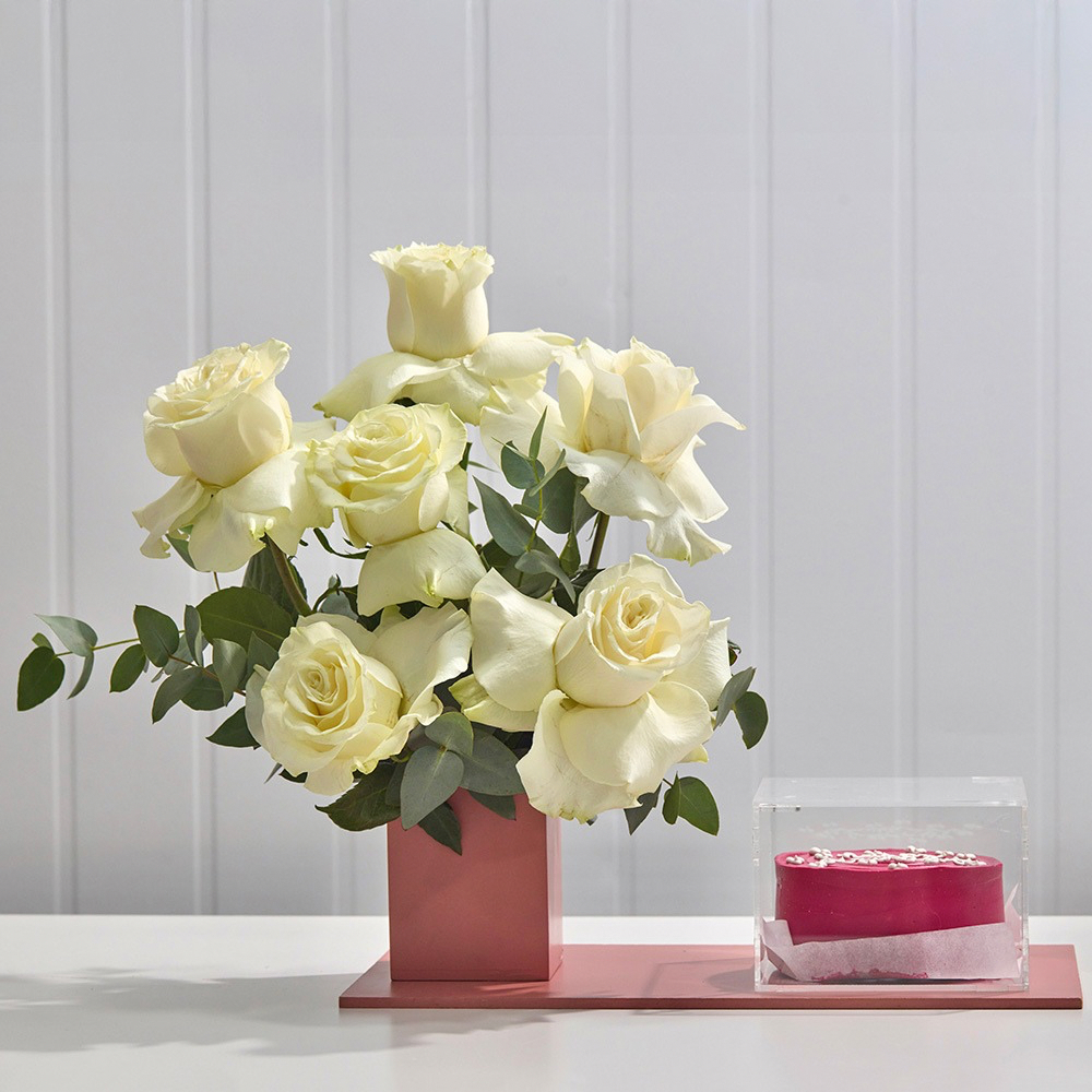 The perfect gift that blends beauty and sweetness to make any birthday truly special. The bouquet contains white roses and a cake.