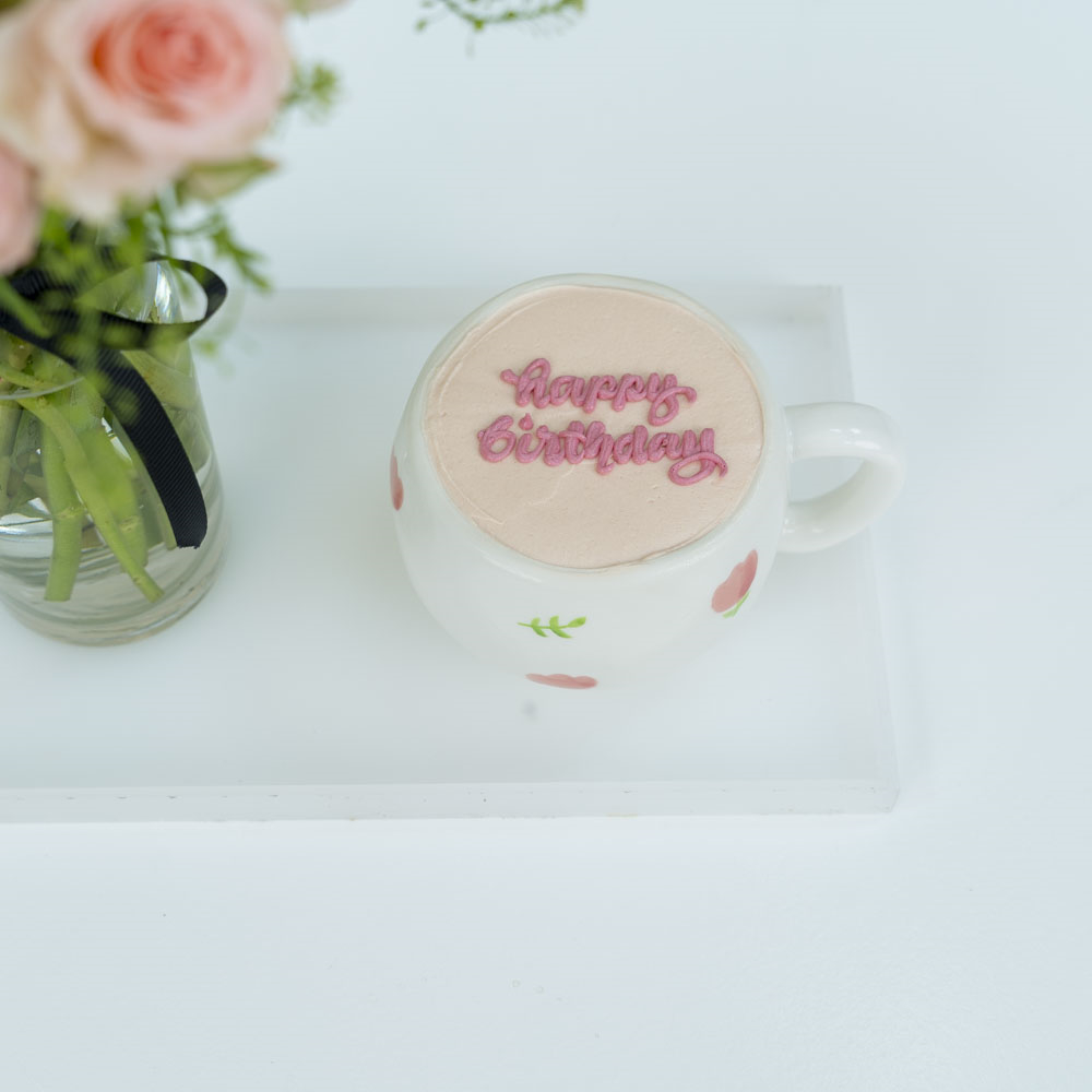 A set containing a baby rose vase and a ceramic mug filled with a chocolate cake.