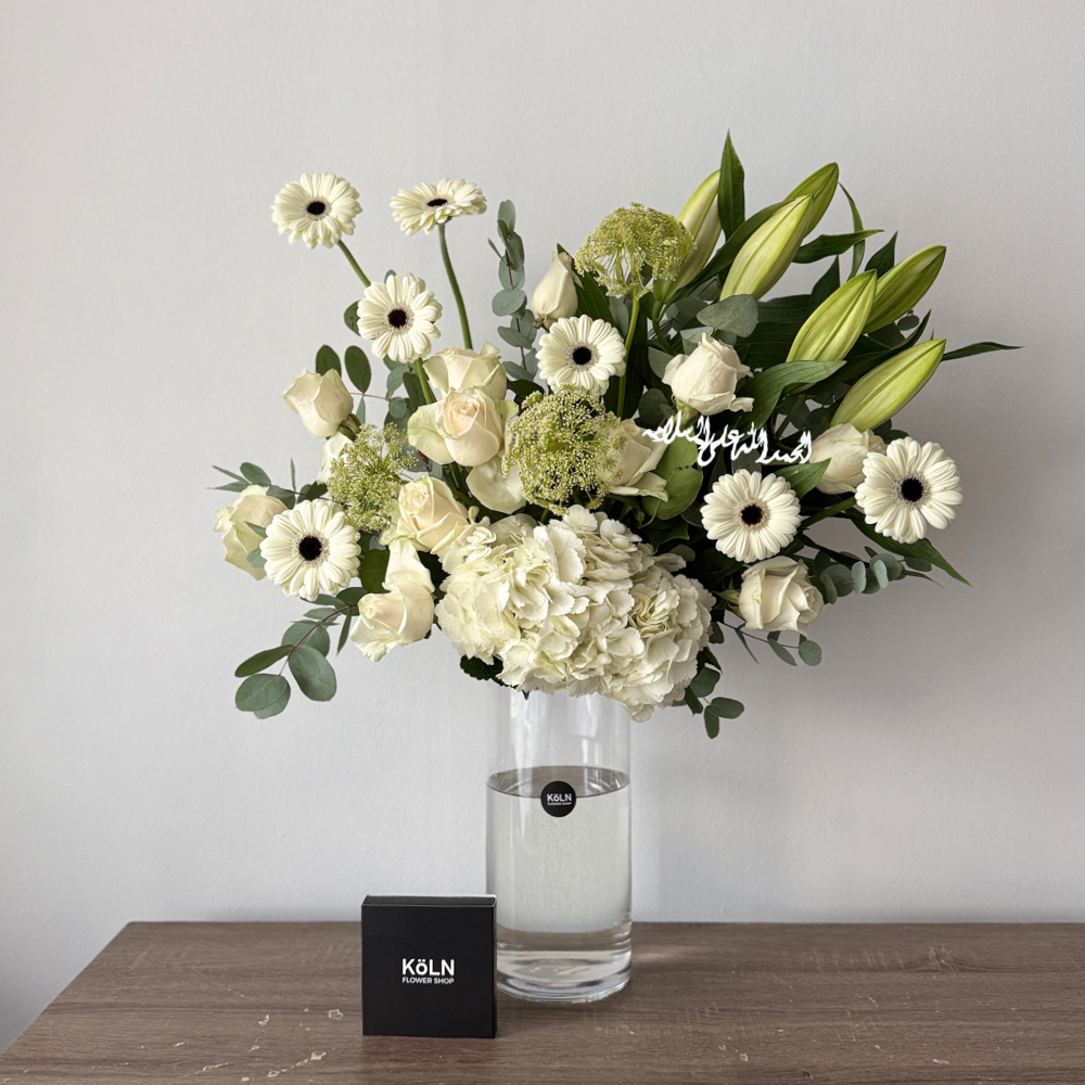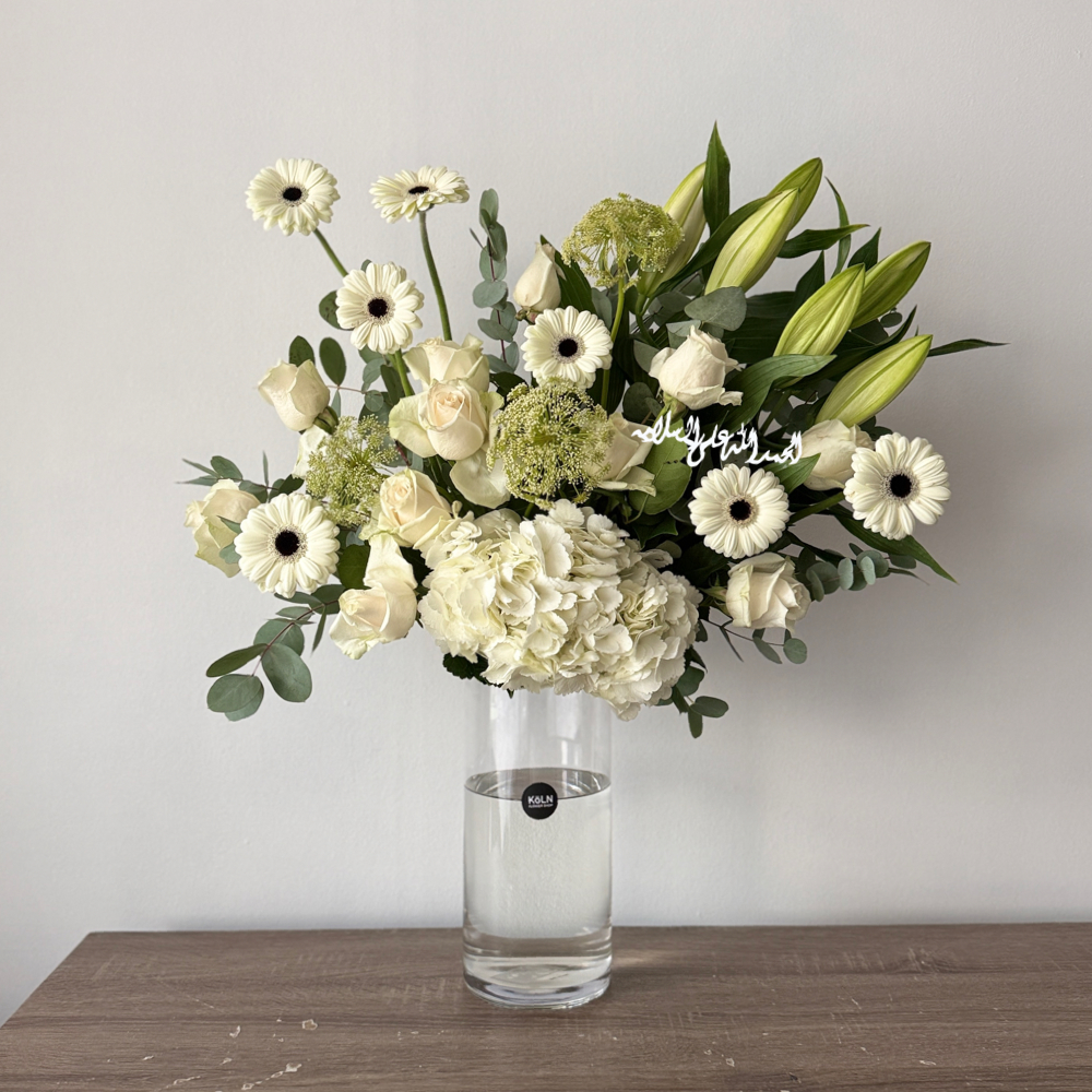 This bouquet contains lilies, baby roses and gerbera flowers.