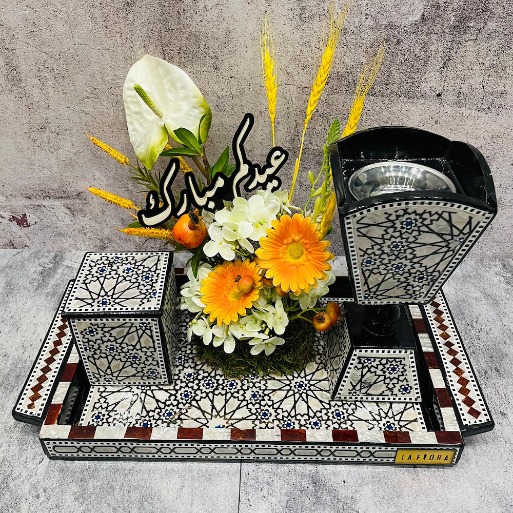 Double layered box contains beautifully arranged roses greens and wheats with belgian chocolates.