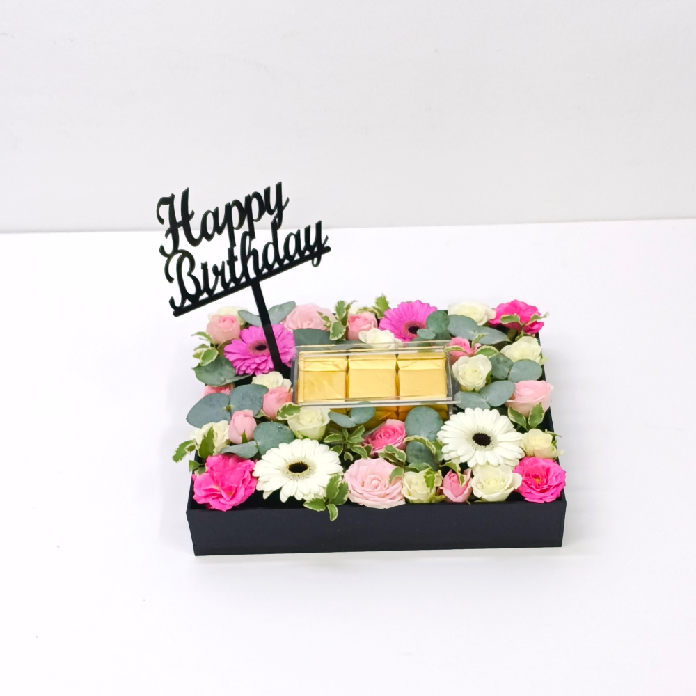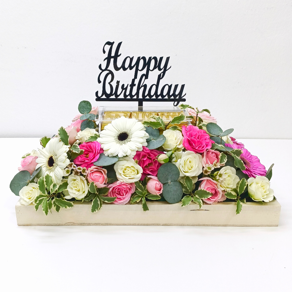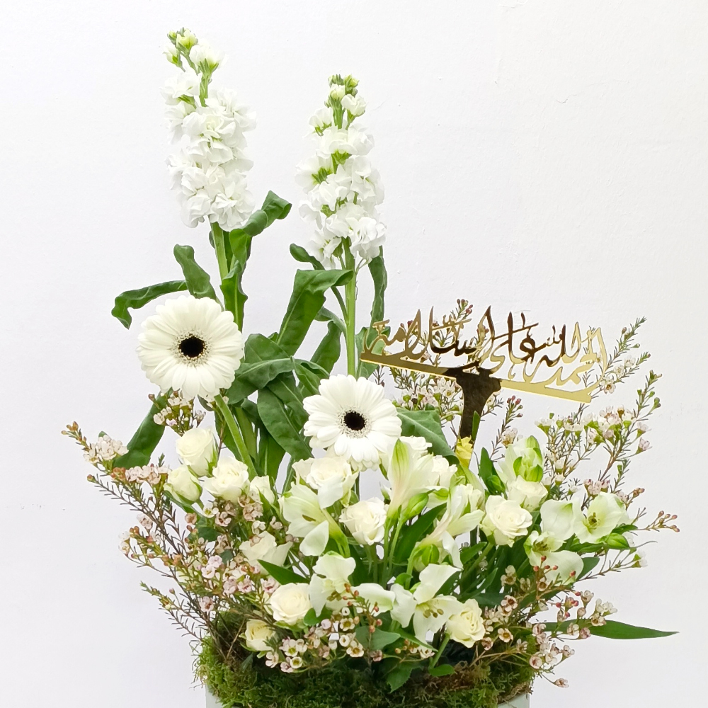 A bouquet containing baby roses, matthiola, gerberas, and alstroemerias, arranged beautifully in a vase.