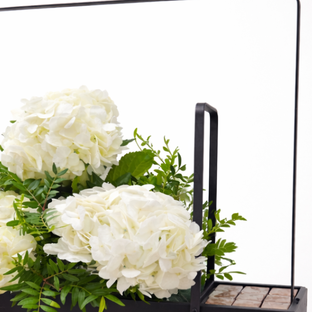 A bouquet of natural hydrangeas, beautifully paired with Belgian chocolates.