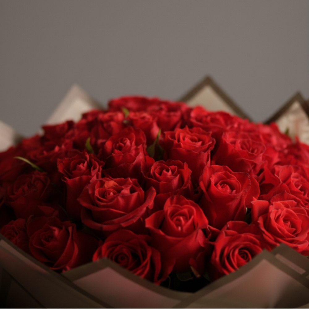 A hand bouquet containing 25 roses arranged elegantly.