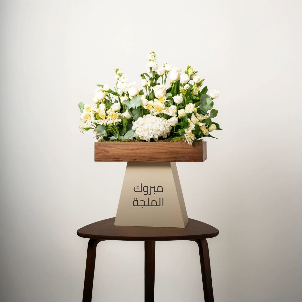 A bouquet that contains roses, hydrangea, alstroemerias and matthiolas.