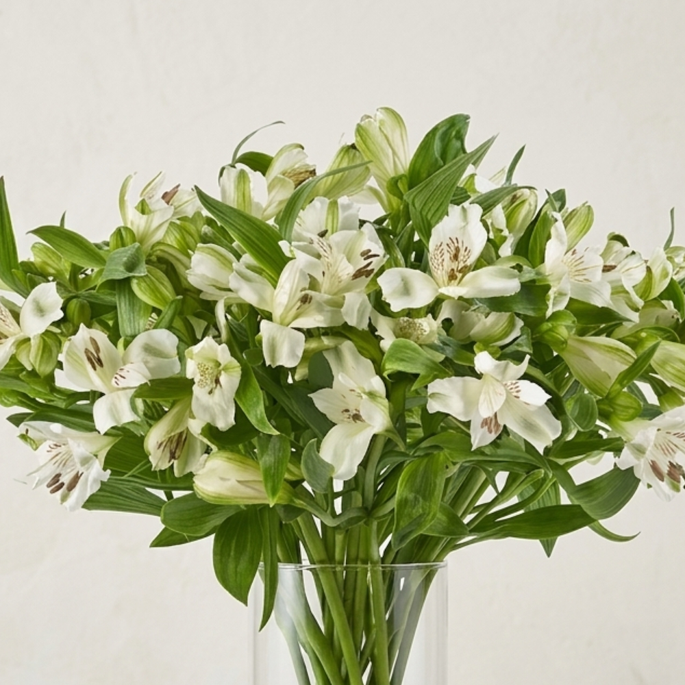 The natural flower bouquet contains alstroemeria flowers that have been beautifully arranged and coordinated inside a vase.