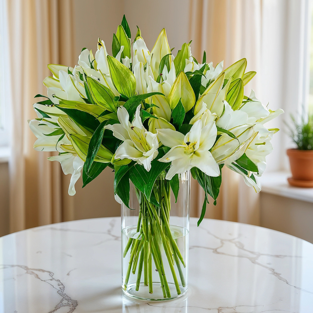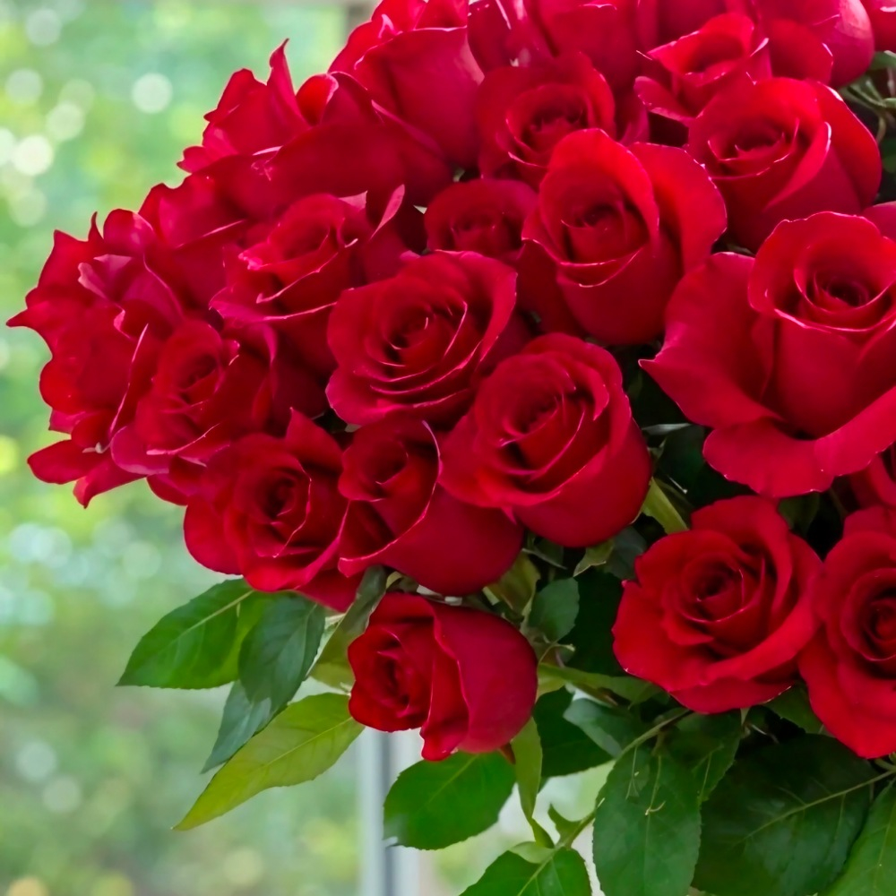 A bouquet containing 75 red roses, arranged beautifully in a vase.