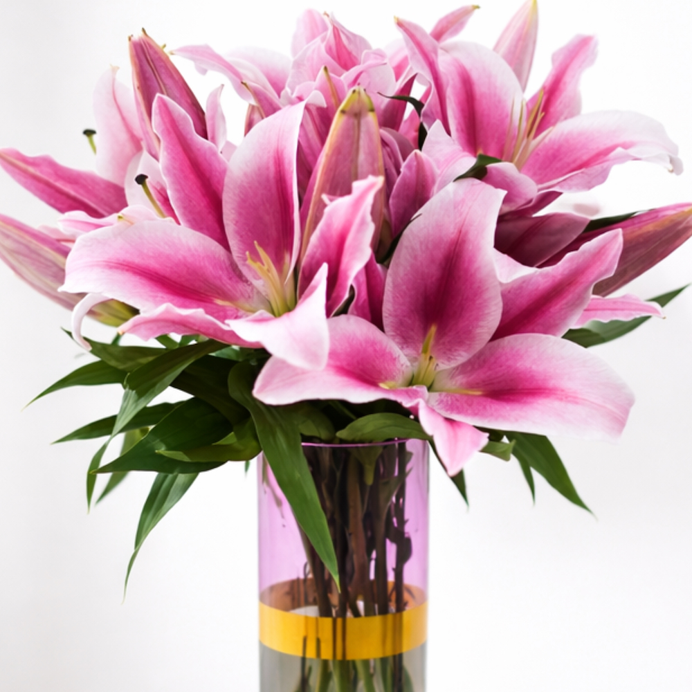 A bouquet of natural lilies, arranged beautifully in a vase.