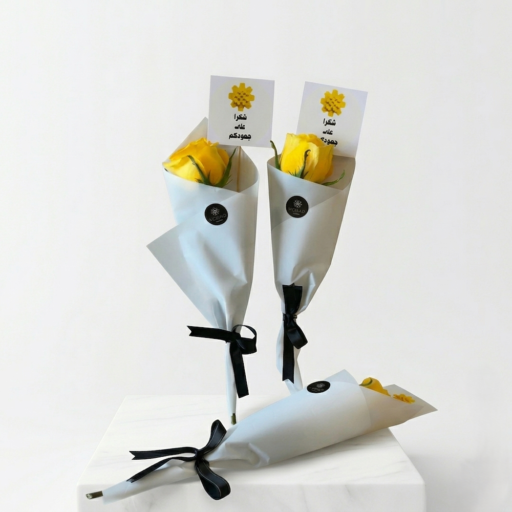 A giveaway of 15 yellow roses along with a Al Arfaj badge with each rose.