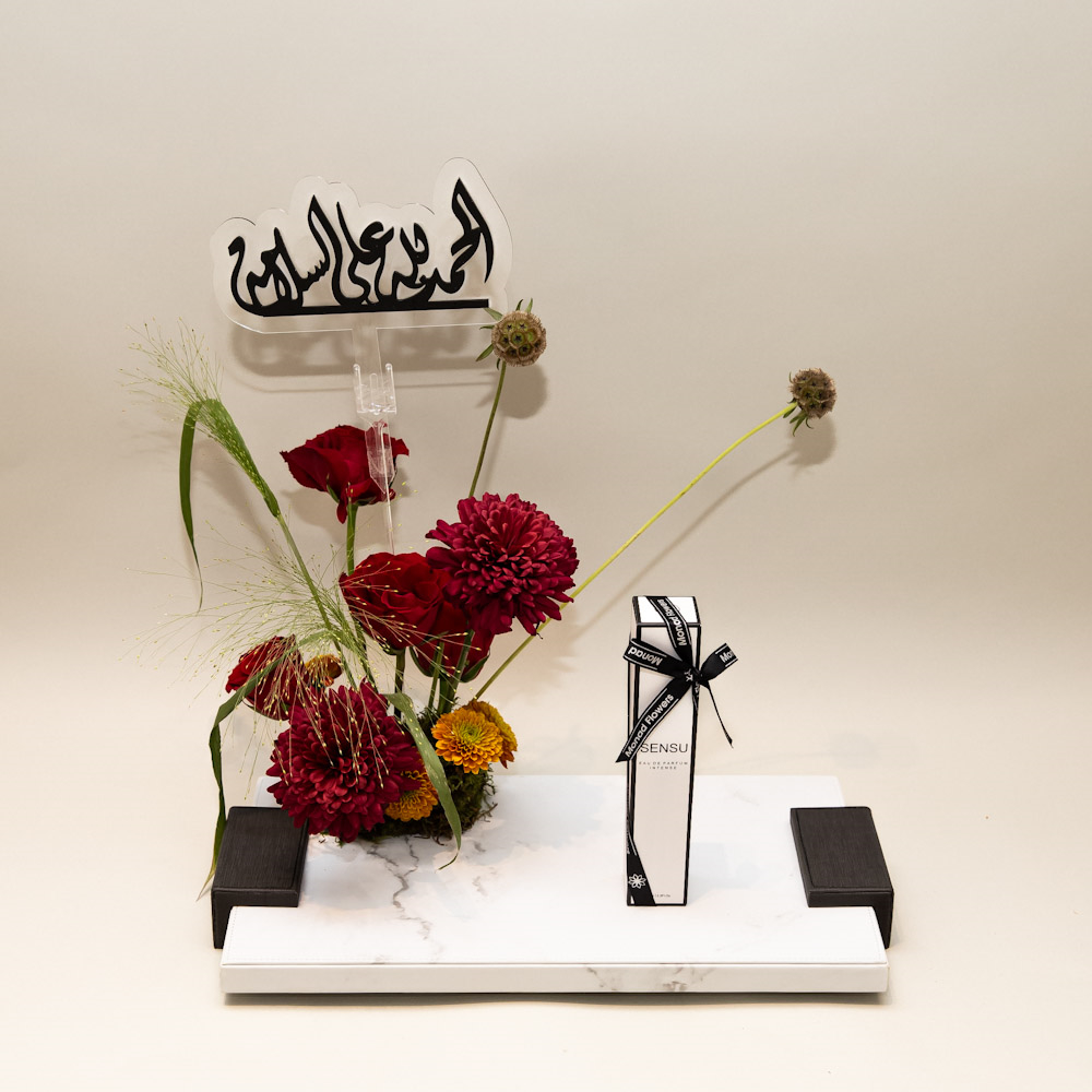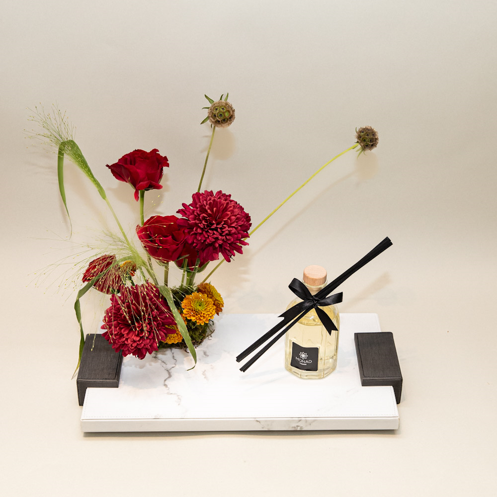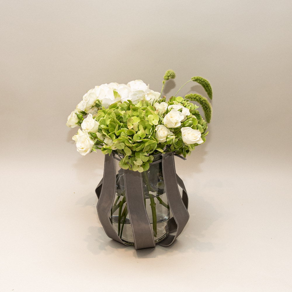 A refined creation where soft roses and gentle symmetry meet in perfect harmony. Each bloom contributes to a peaceful rhythm, making this design a timeless expression of balance and grace.