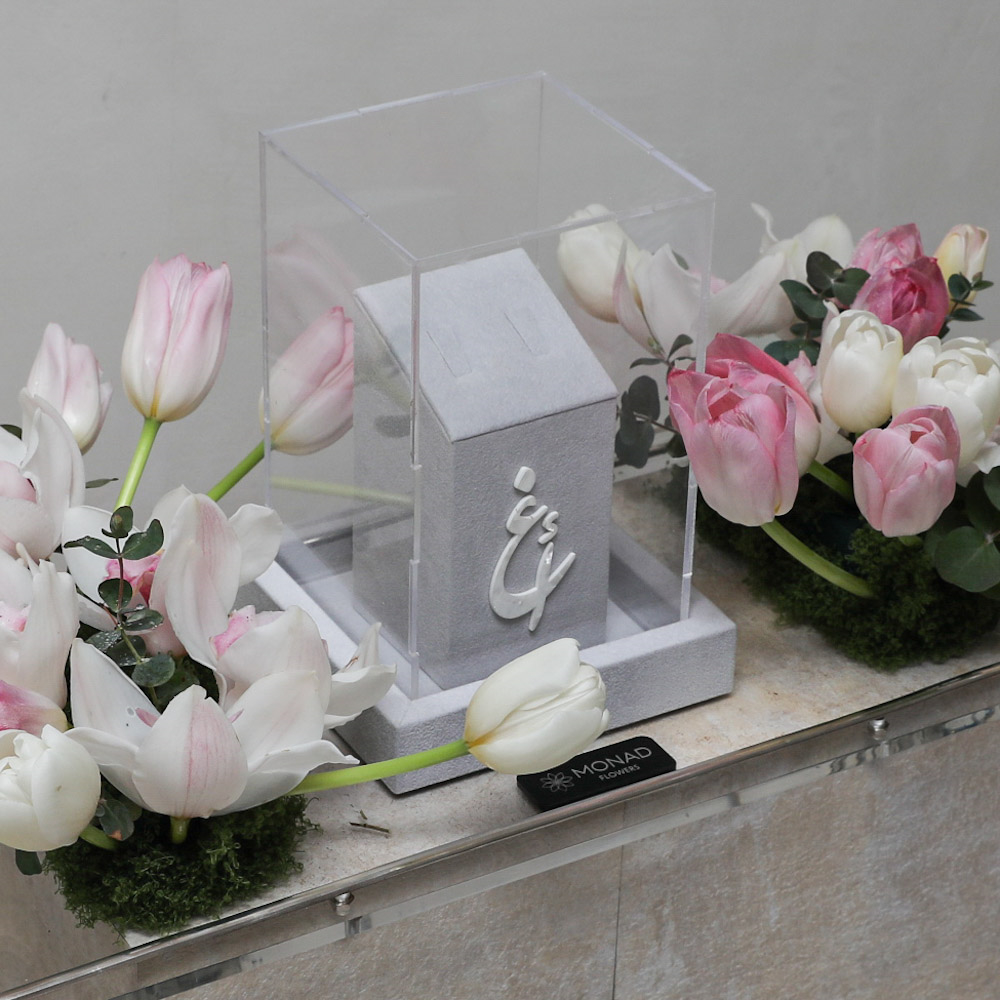 An elegant bridal set with a luxurious design in a refined style that reflects sophistication and a new beginning filled with love, with soft feminine and romantic touches.