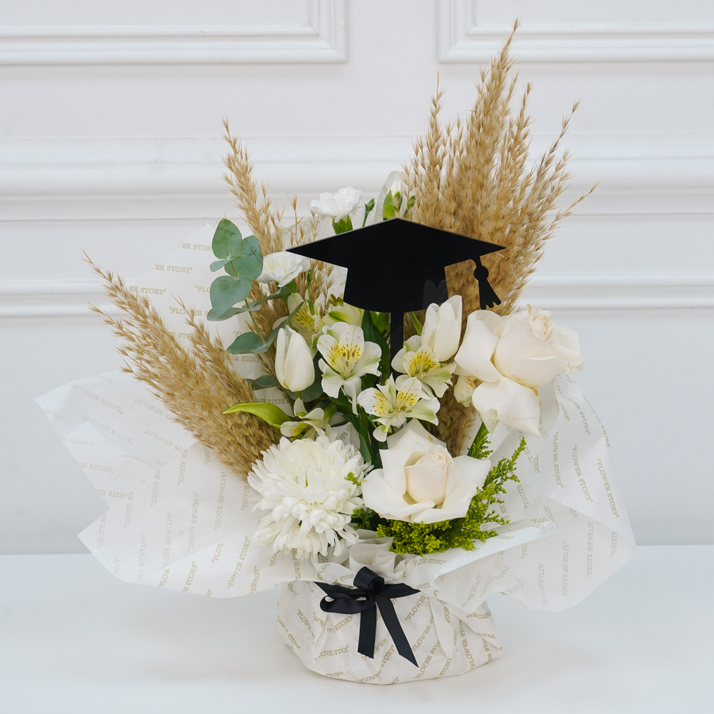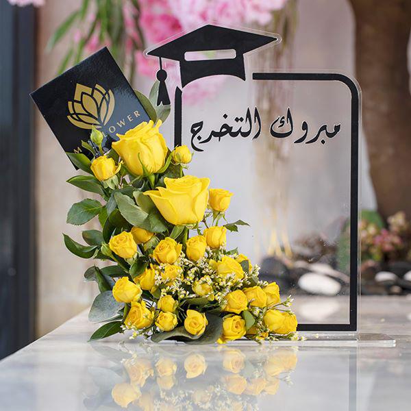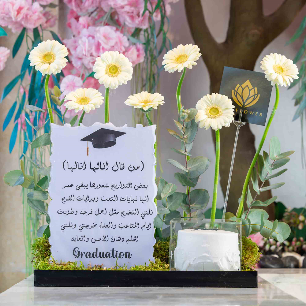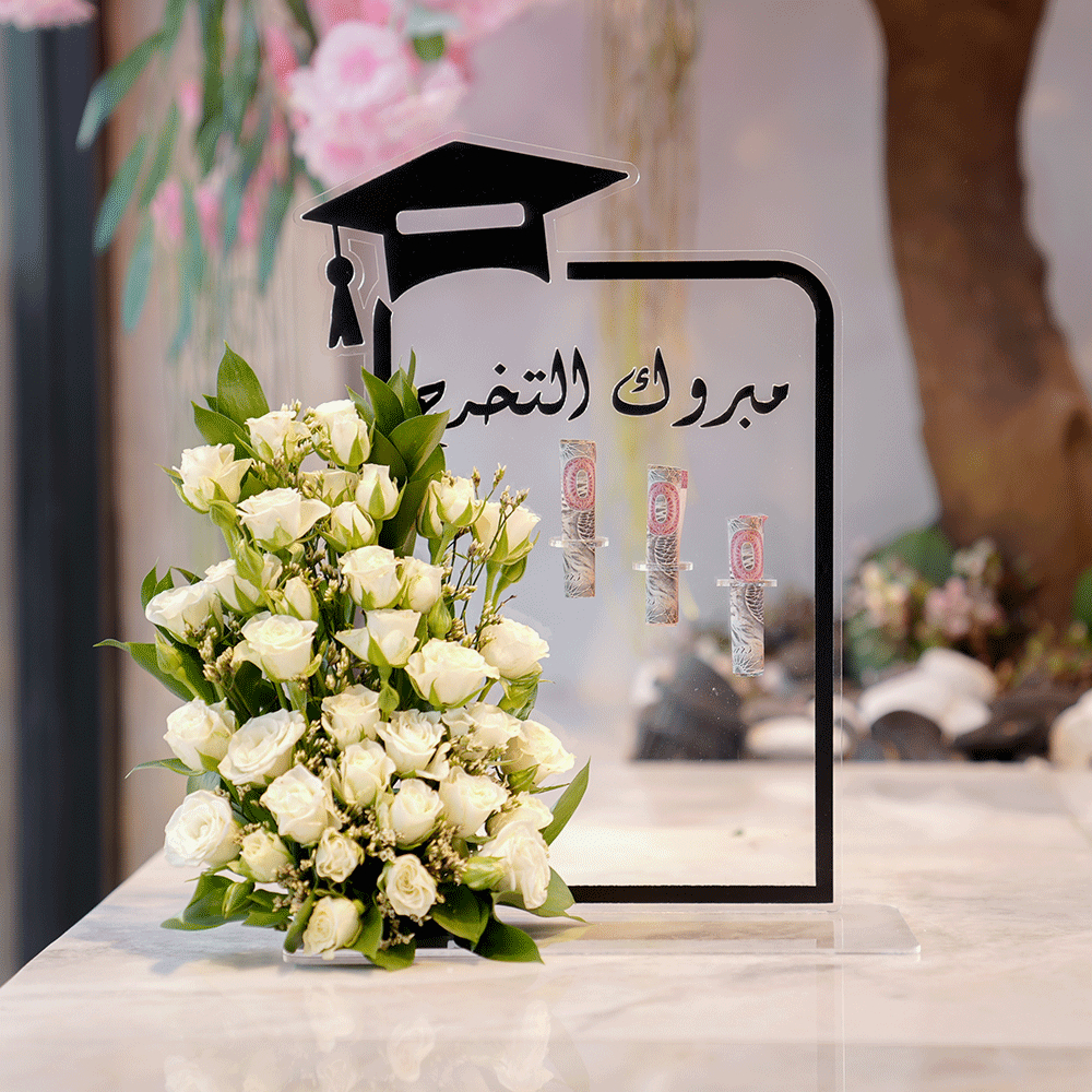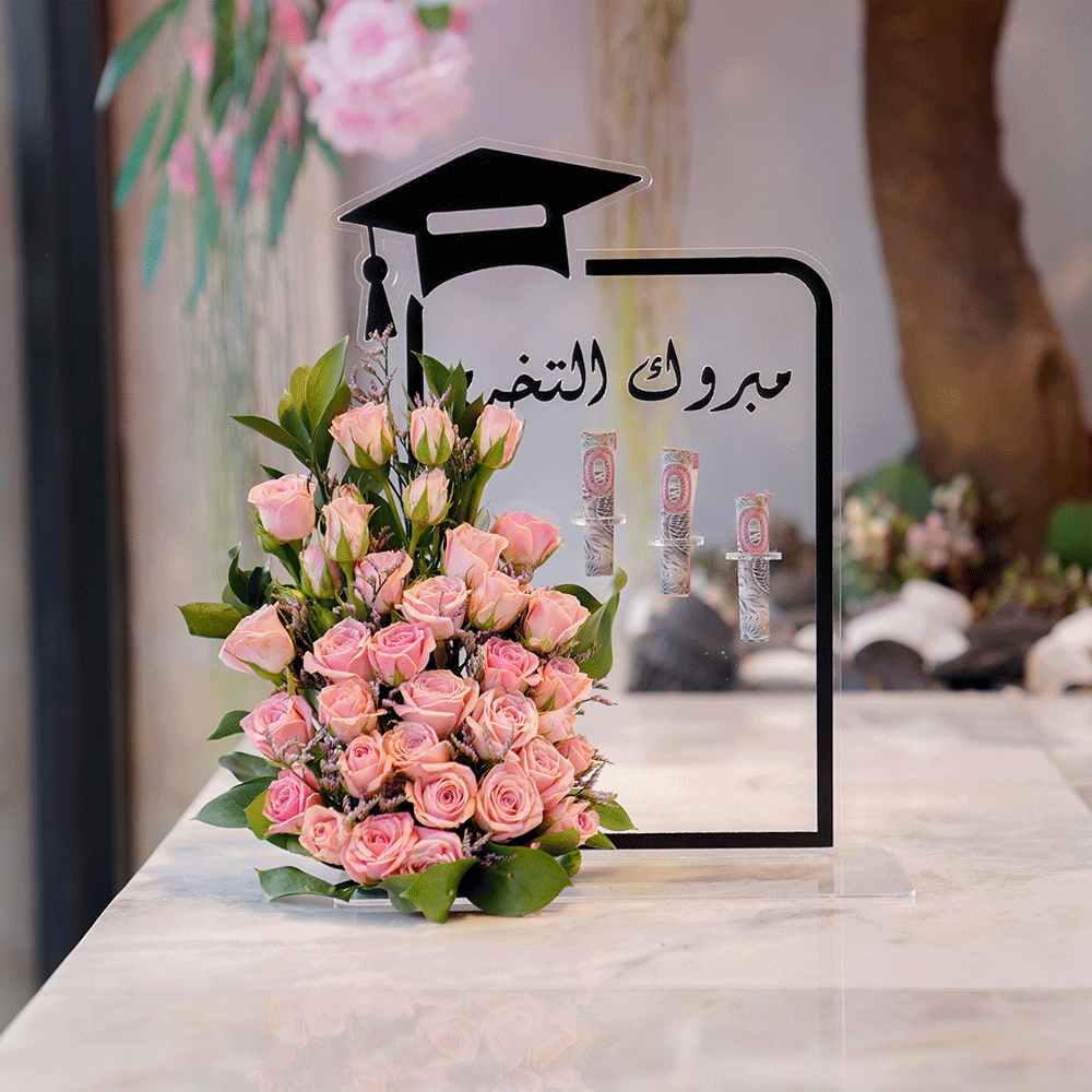 Acrylic graduation stand with roses flowers.