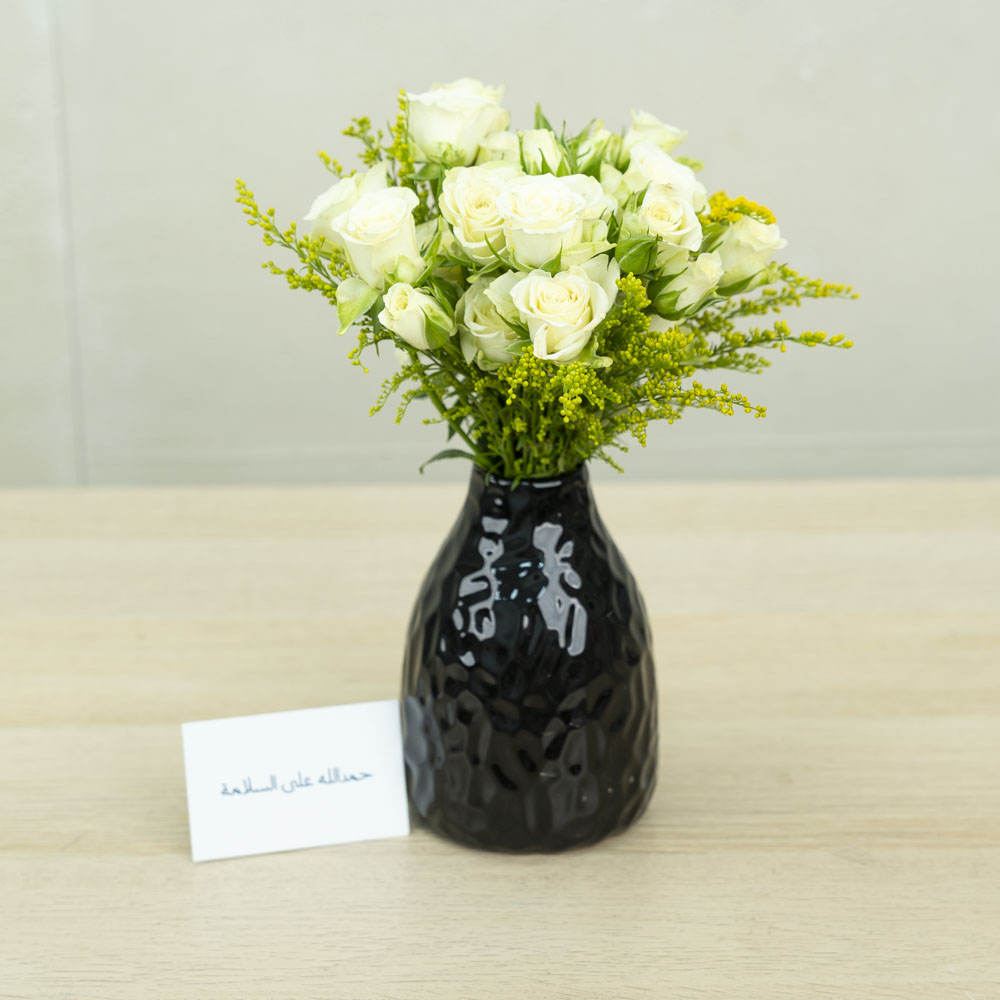 This bouquet contains baby roses with chocolates.