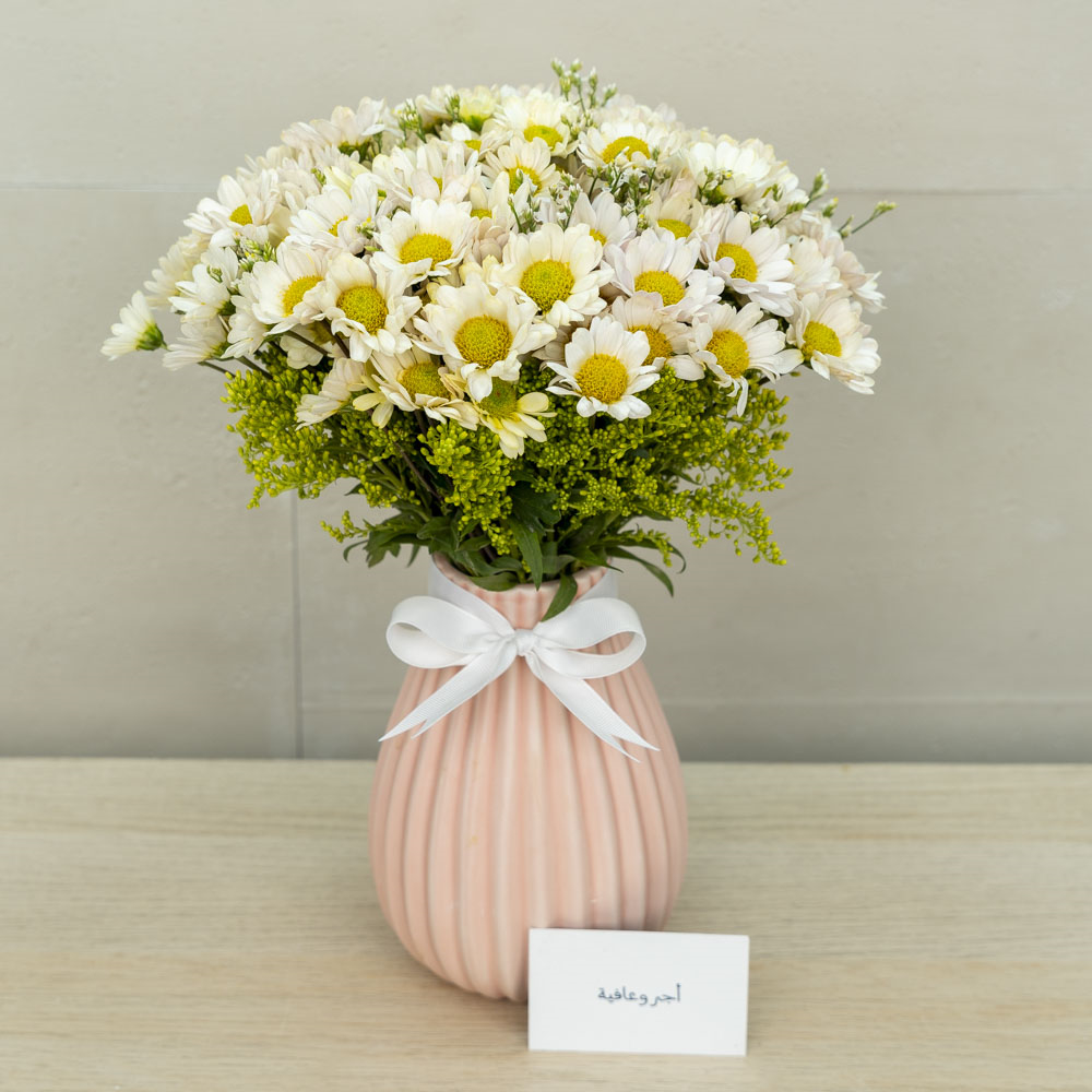 This bouquet contains chrysanthemum flowers.