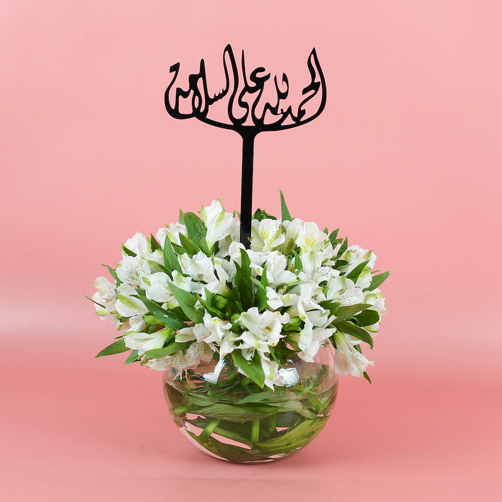 A bouquet featuring beautiful white alstroemerias.