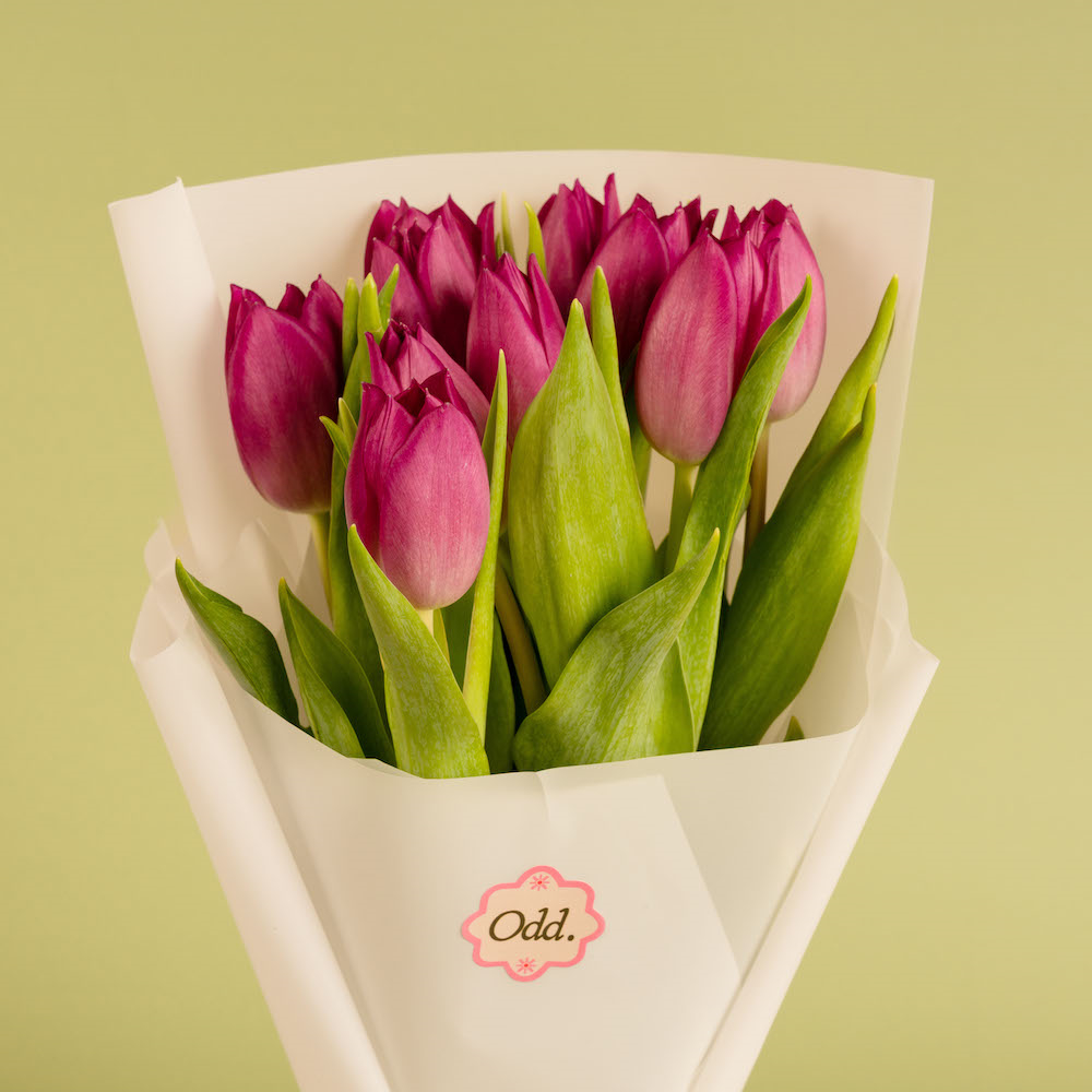 An elegant bouquet featuring elegant purple tulips.