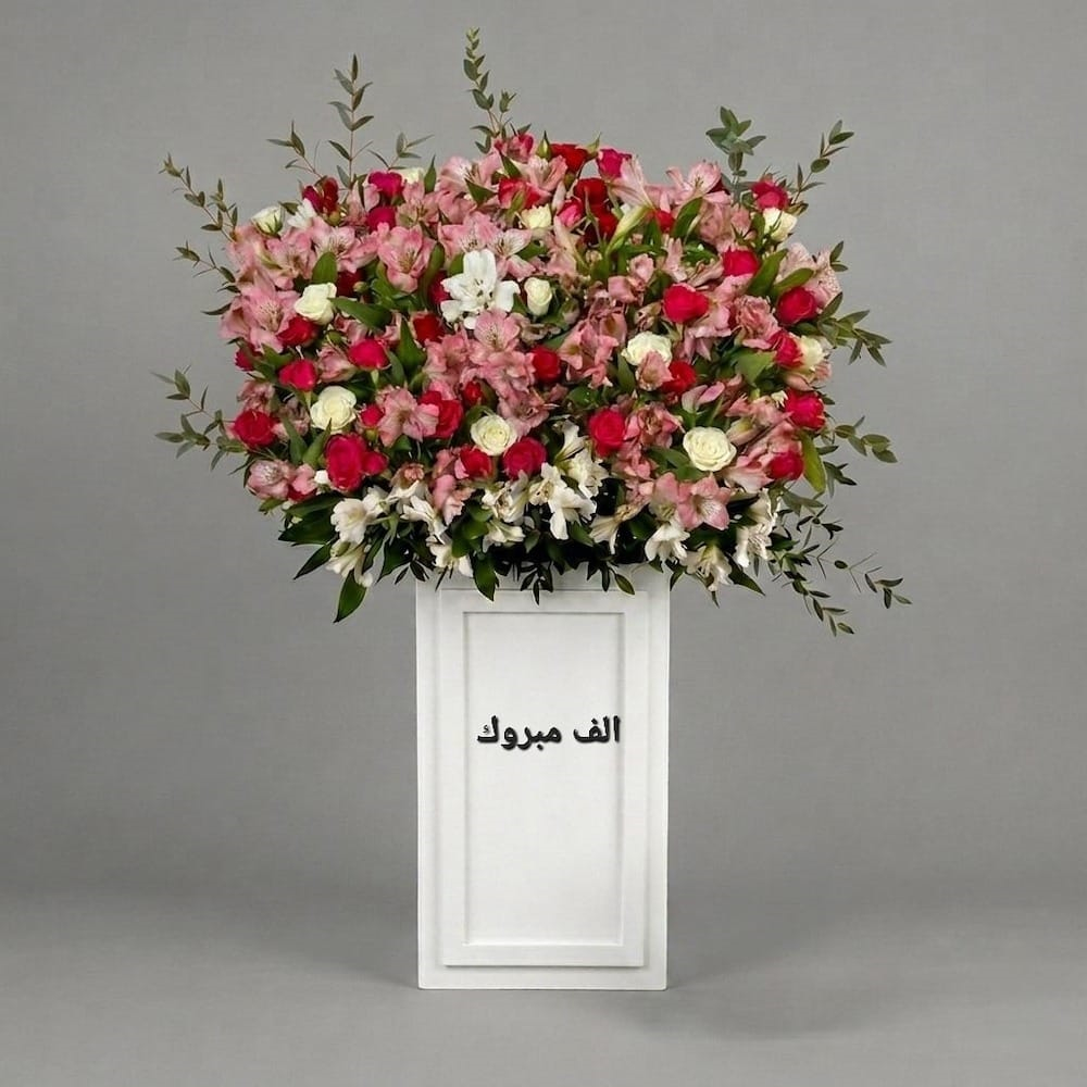 A luxurious stand featuring baby roses, chrysanthemums, and alstroemerias.