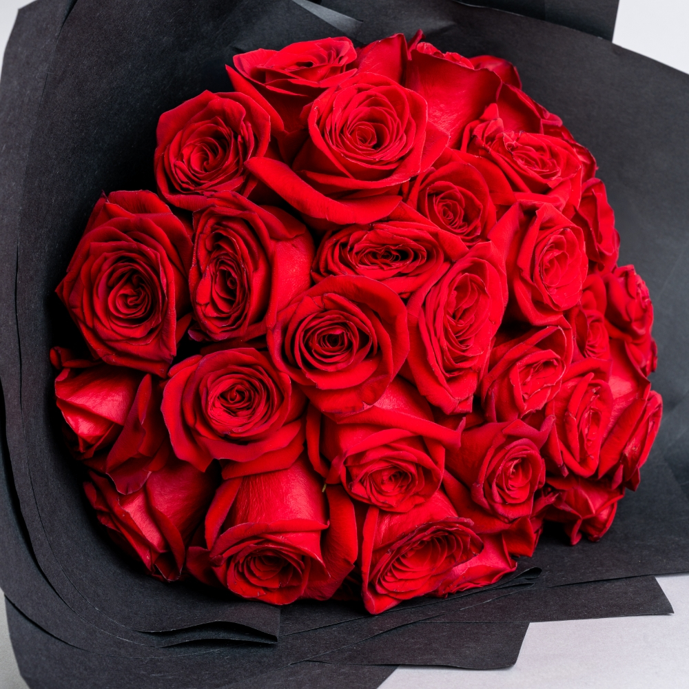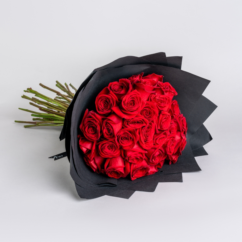 A stunning bouquet of 50 red roses, beautifully hand-tied to express love and passion in the most elegant way. The perfect gift to convey deep emotions and celebrate heartfelt moments.