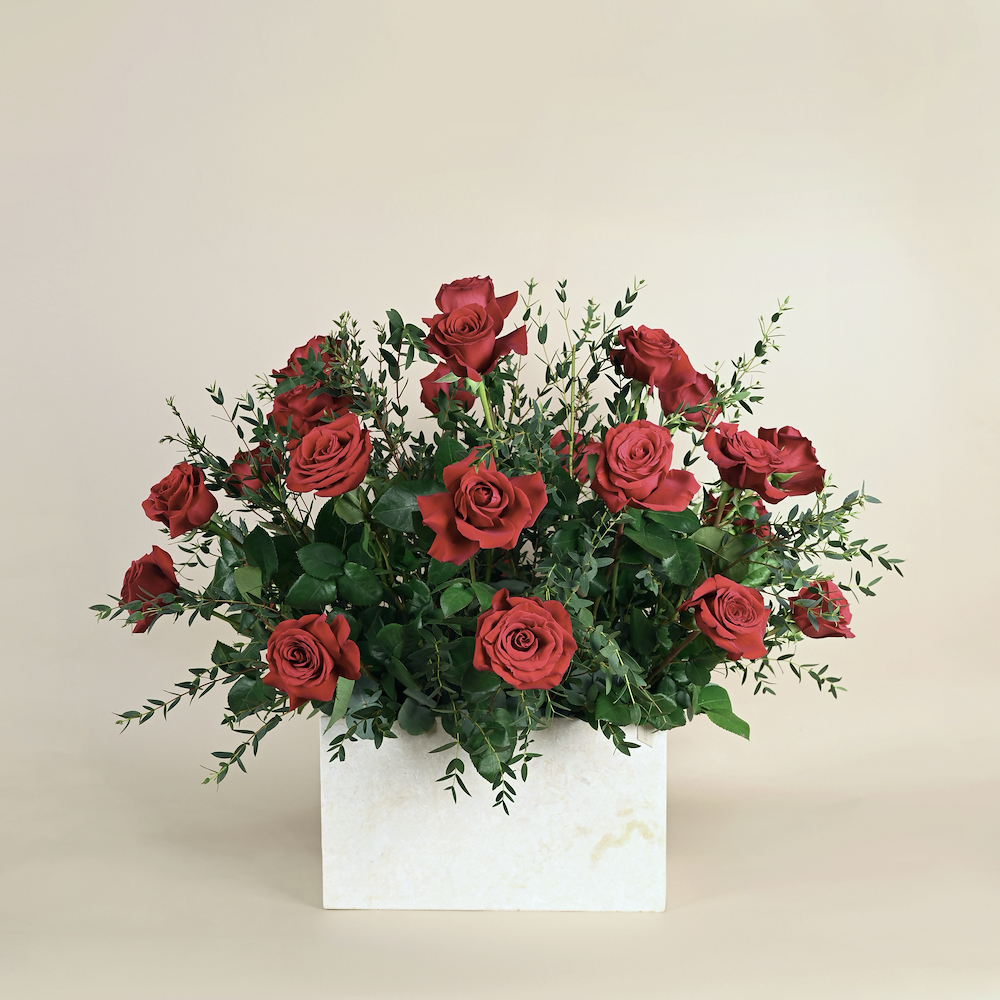 A travertine tray that contains orchid flowers with super soyofi bukhour and a home spray.