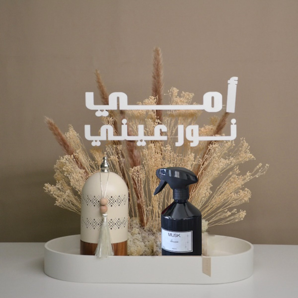 Travertine tray that contains Acrylic stand (customize name) delphenuim and status flowers with Roots chocolate.