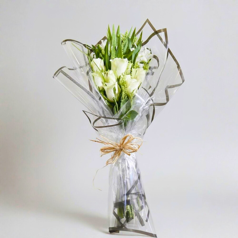 A bouquet featuring white roses with a unique look.