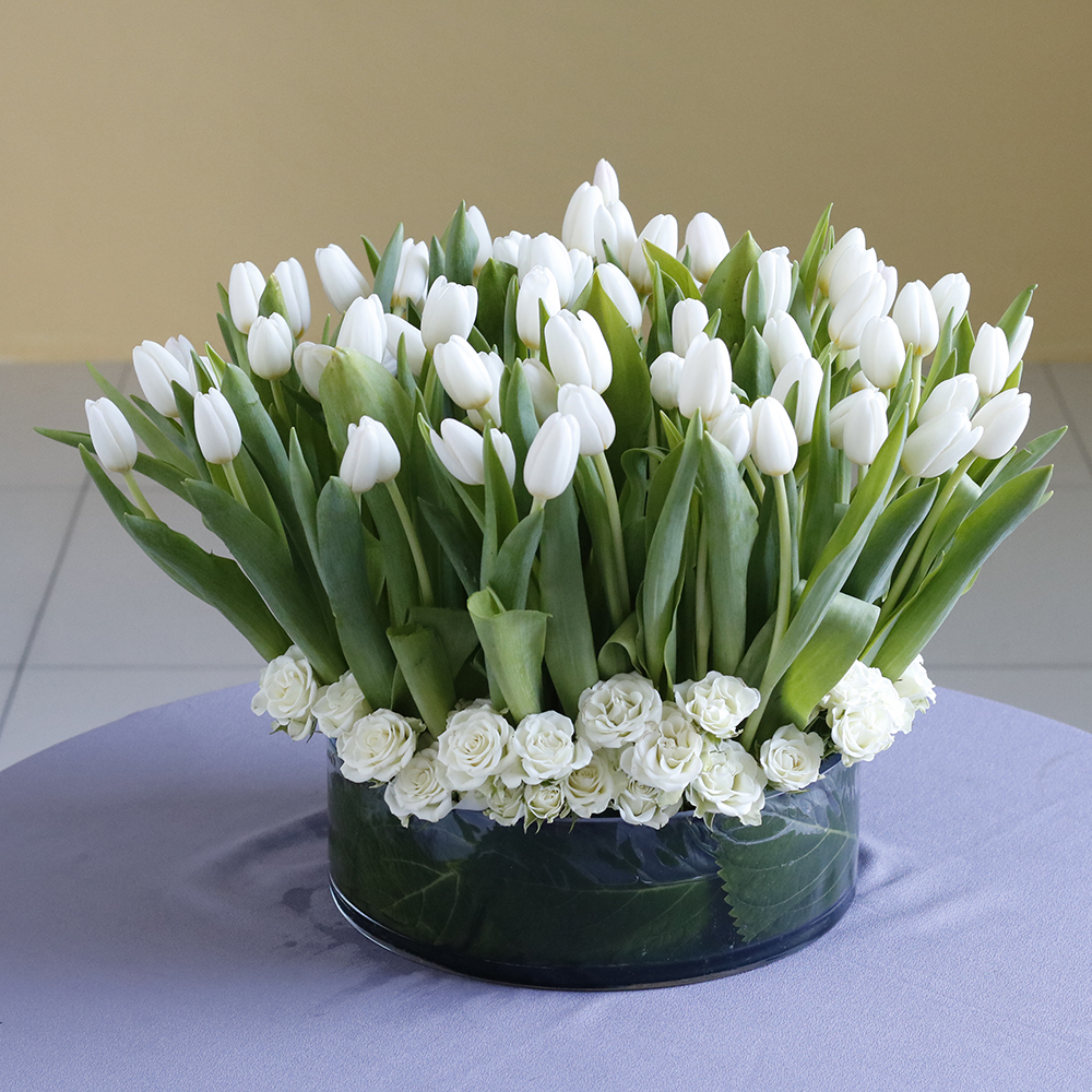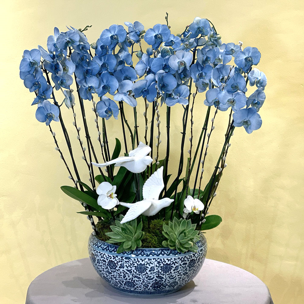 A bouquet containing baby roses, orchids, hydrangeas, and alstroemerias, arranged beautifully in a vase.
