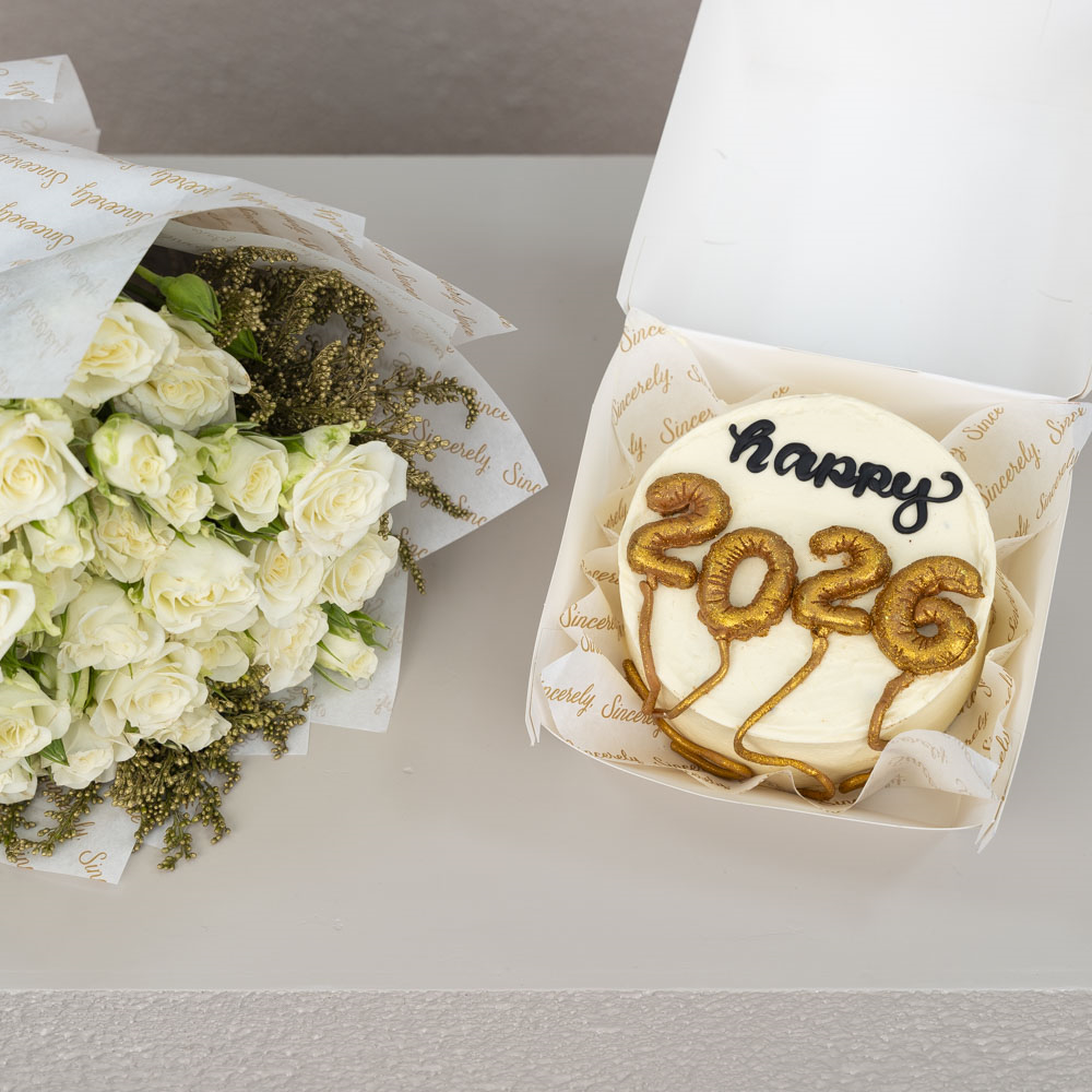 Baby rose bouquet with a 4 inch chocolate bento cake.