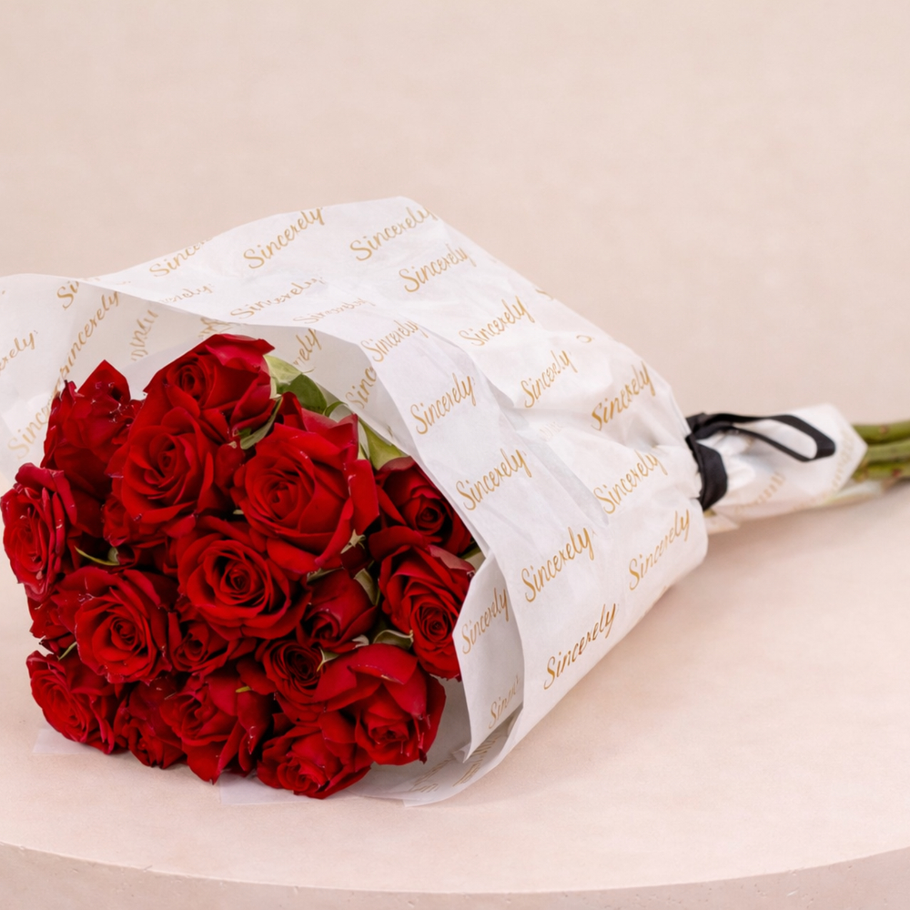 This bouquet contains roses and baby roses with a mini chocolate cake.