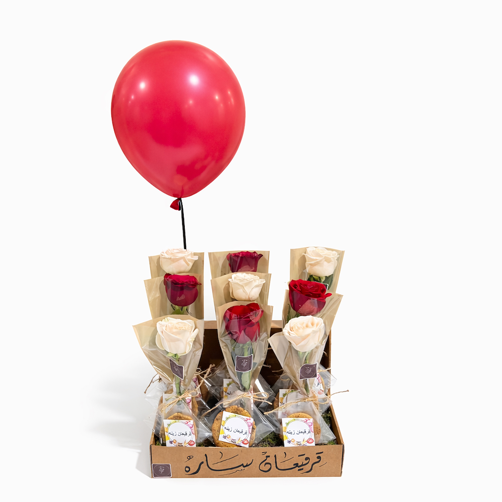 A set of 6 giveaways featuring roses and cookies.