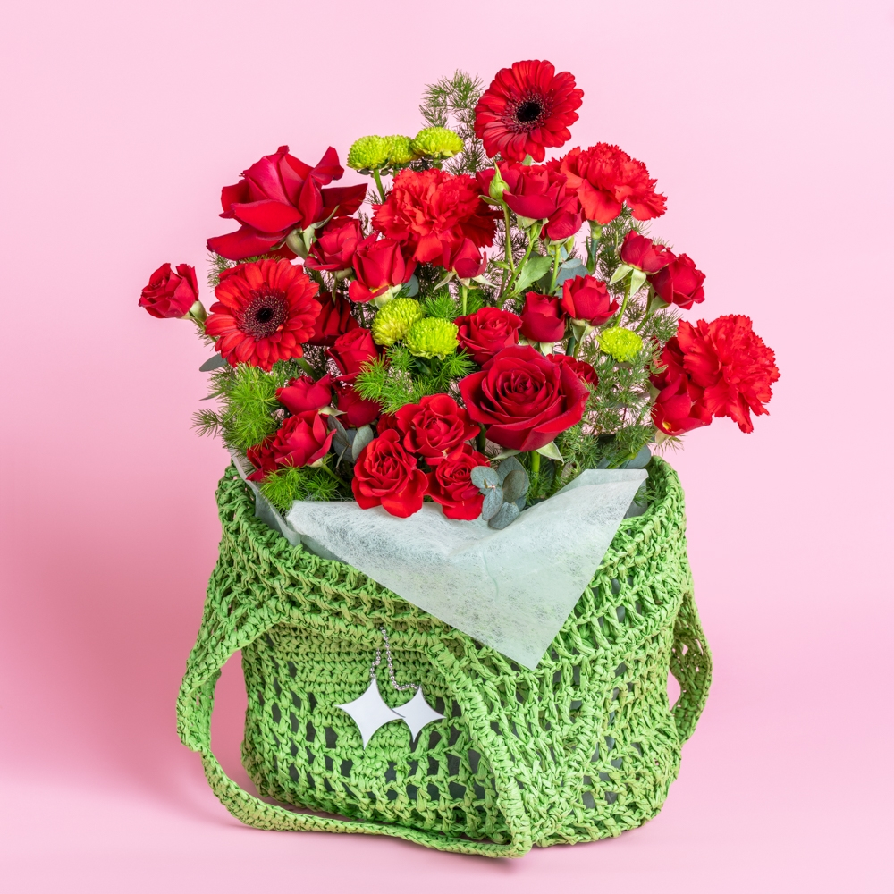 A basket featuring roses, baby roses, carnations, and gerberas for a charming and delightful presentation. A lovely gift that adds elegance and warmth to any occasion.