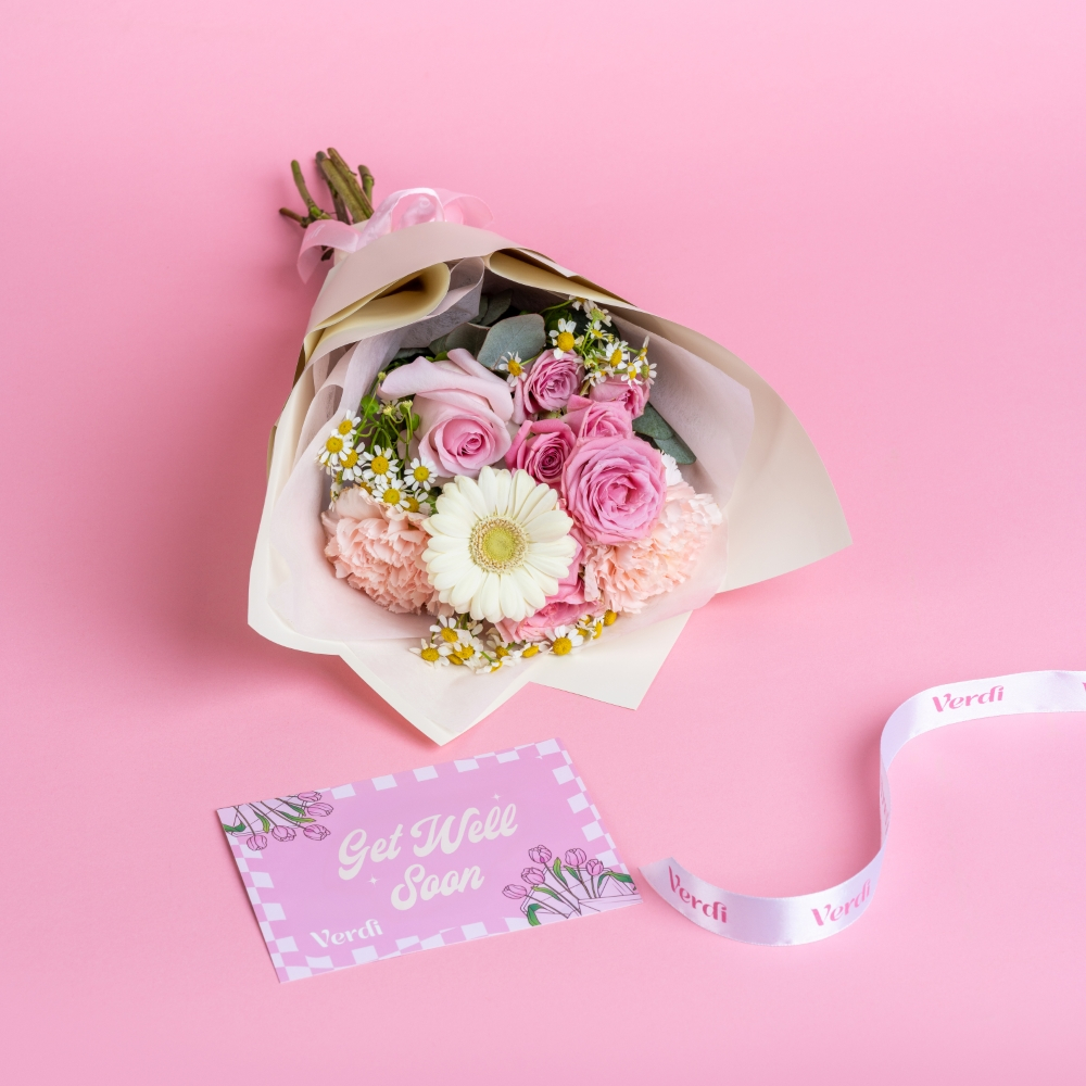 A joyful box with gerberas, roses, baby roses, and carnations, paired with a delicate cake. A thoughtful gift that spreads happiness on every occasion.