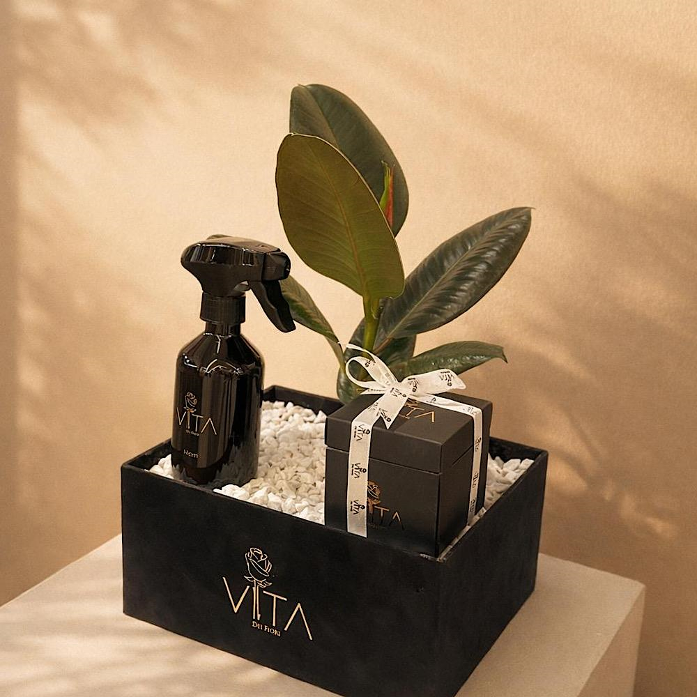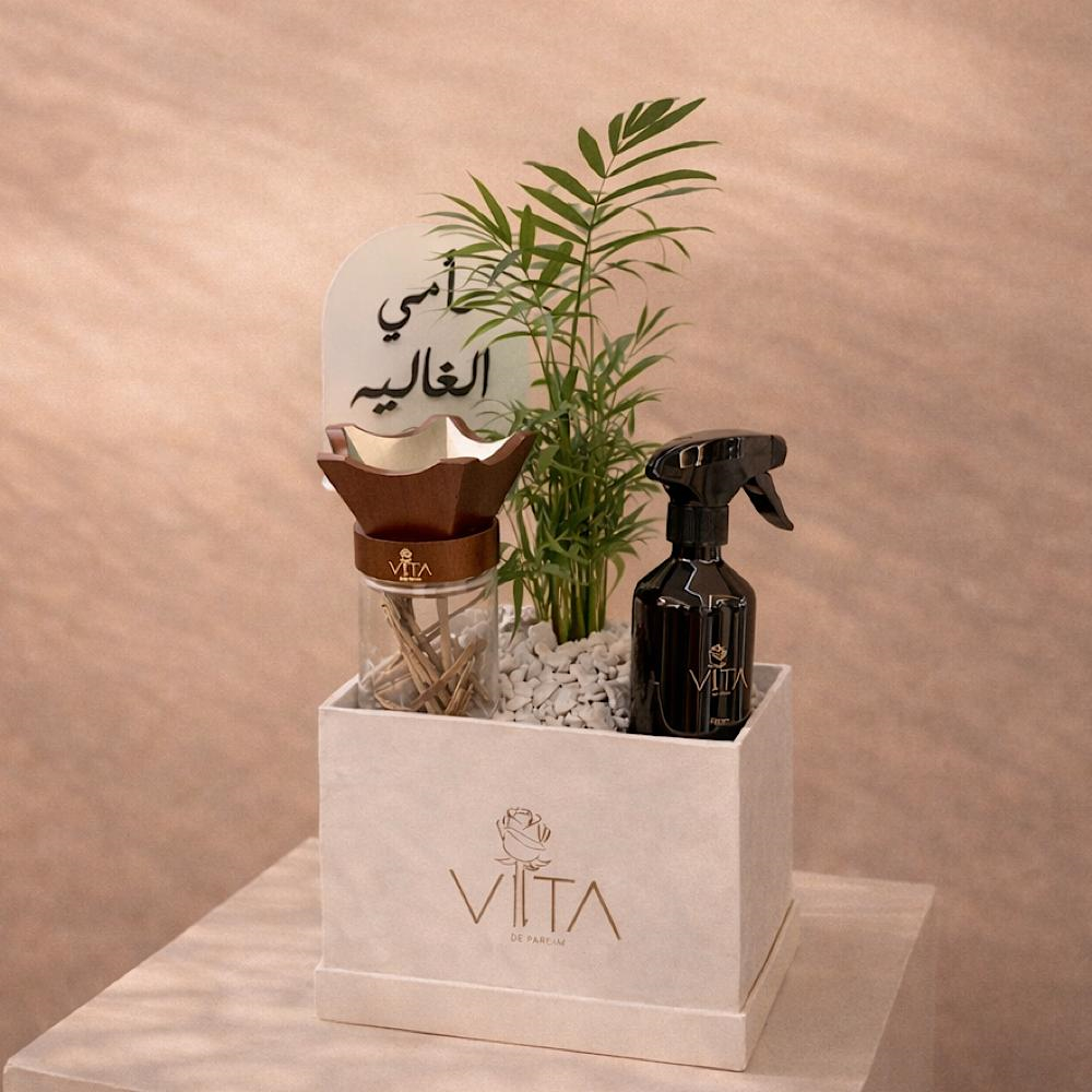 A white box contains "Plant Parlor Palm" home fragrance, a mubkhar, 1 tola of Soyoufi bokhour and a topper
