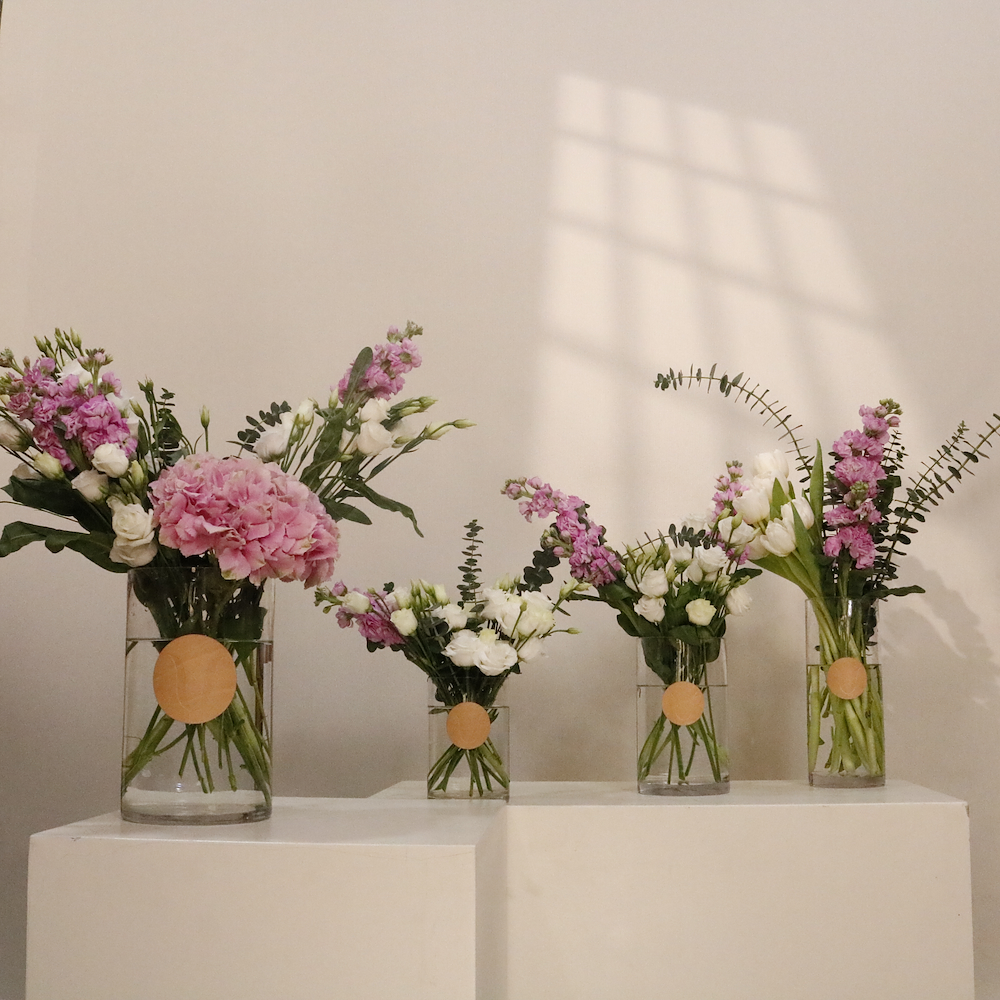 A set of 4 luxury flower vases, featuring premium seasonal blooms perfect for home styling and elegant gifting in Kuwait.