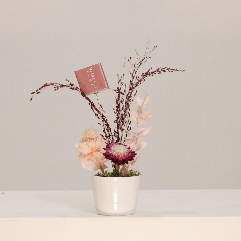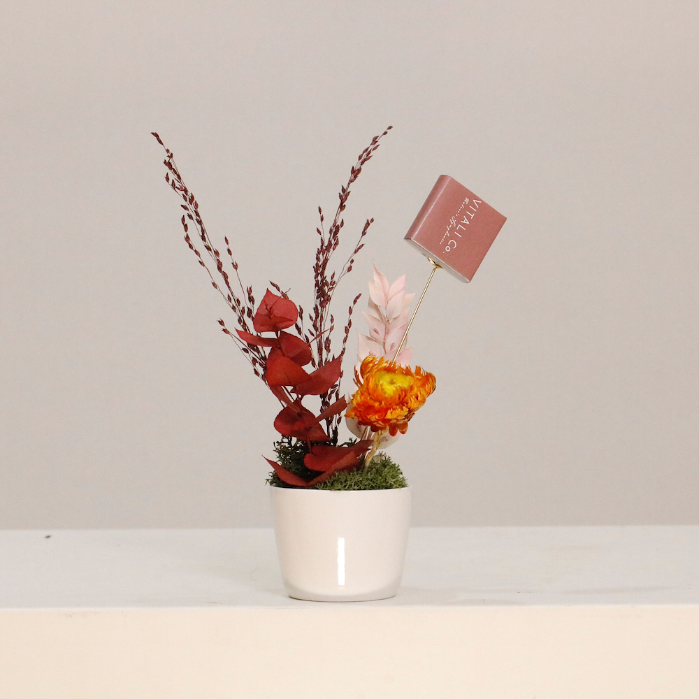 A charming set of 12 Gergeaan mini vases featuring preserved flowers in elegant pots with warm, festive tones. Each arrangement includes a piece of chocolate, making it perfect for Gergeaan celebrations, children’s giveaways, family gatherings, and Ramadan moments