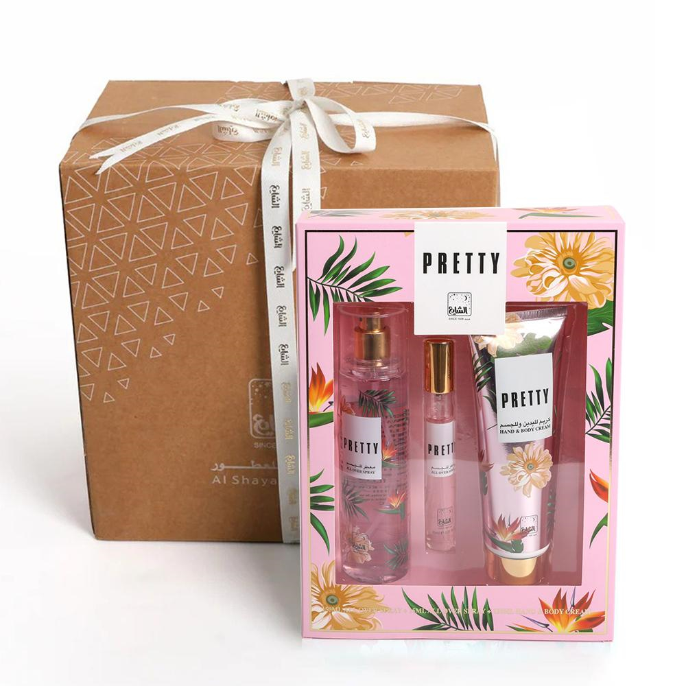 An elegant gift set featuring 5 pretty collection giveaways each contains body mist (150ml), body mist (15ml) and hand & body cream (120ml).